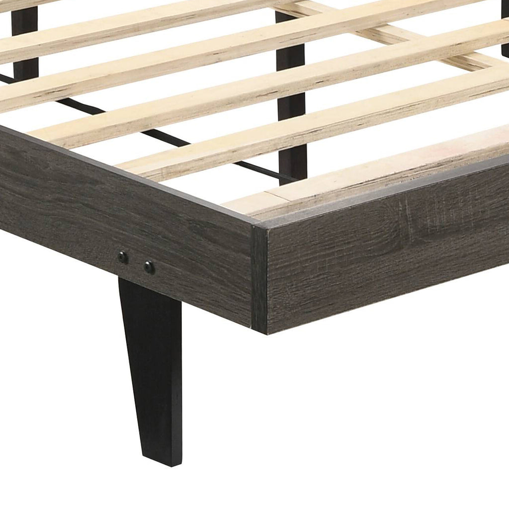 - Weathered grey finish on the bed frame adds a rustic and distressed aesthetic, infusing a sense of character and charm into your bedroom