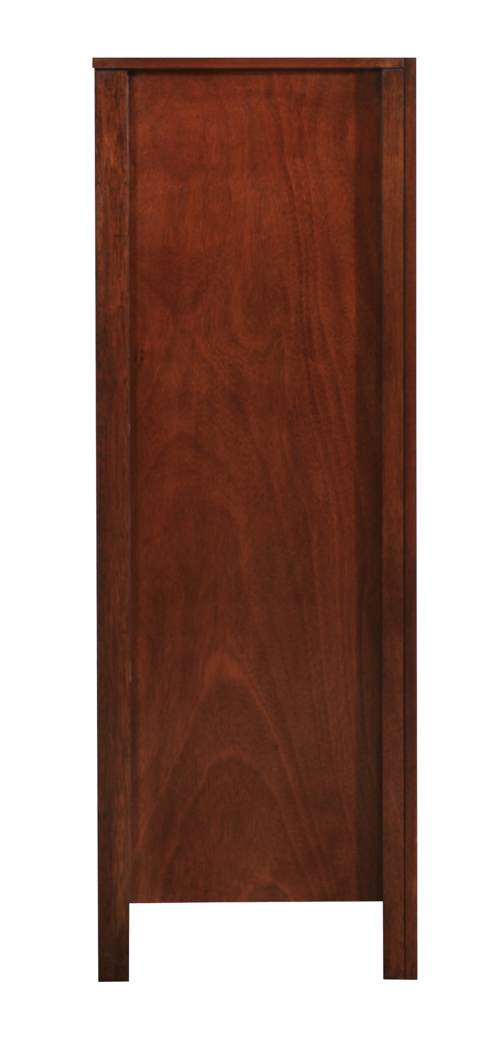 The chest features dove-tailed drawers that glide smoothly and utilize robust nickel hardware for added resilience and ease of use. With five spacious drawers, it offers plenty of room for clothing, linens, or other essentials, making it an essential addition to your home organization.