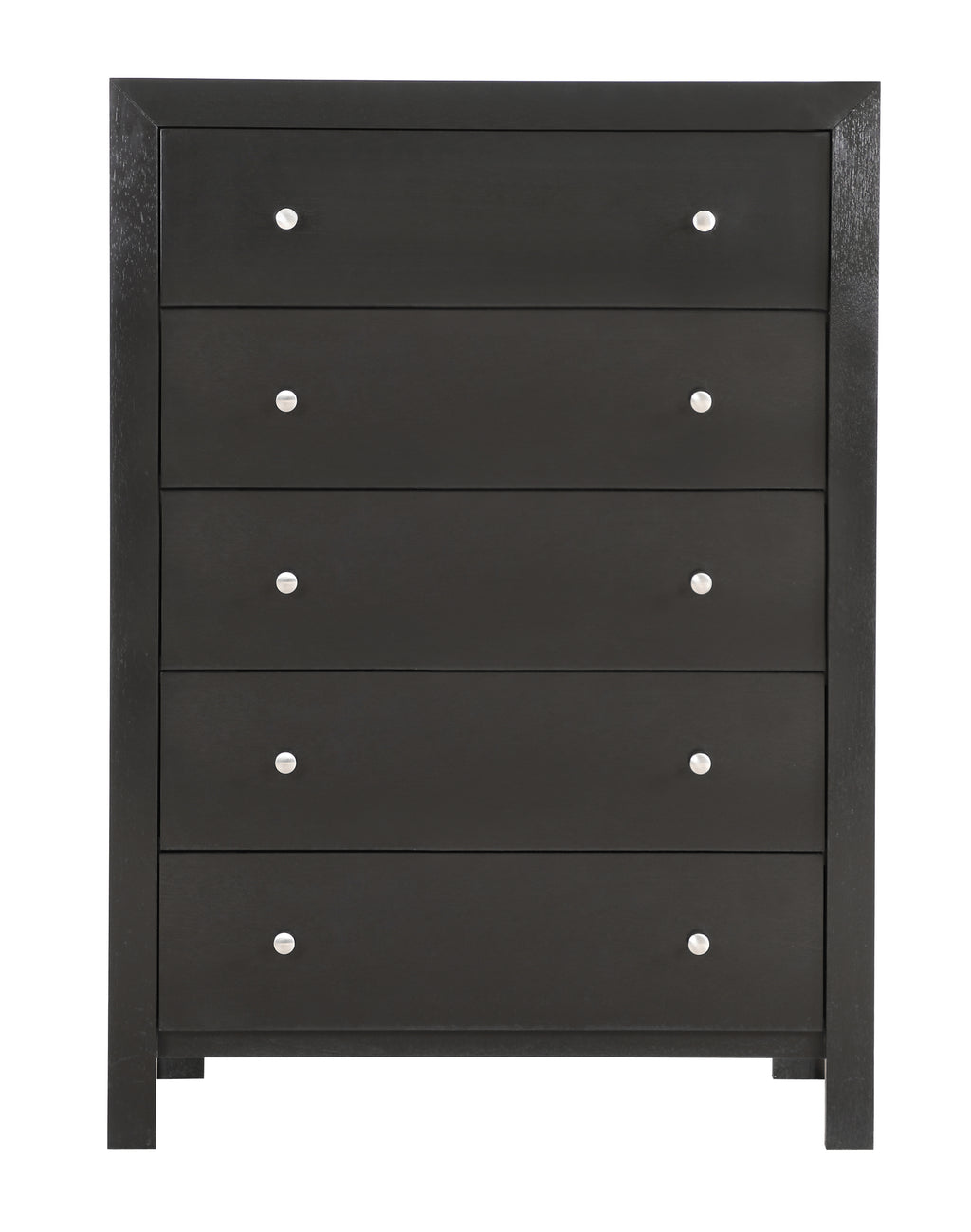 With five generously sized drawers, this chest offers ample room for organizing clothing, linens, and personal items, helping to maintain an organized living space. The robust design incorporates durable wood veneers, which not only adds to its aesthetic but also ensures lasting durability. Moreover, the dove-tailed drawers provide enhanced integrity, guaranteeing that they will withstand daily use.
