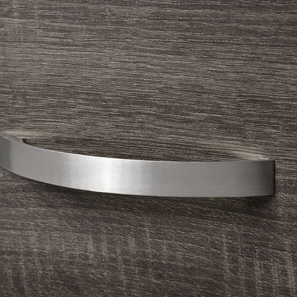 - Nickel finished hardware accentuates the two-tone grey oak finish, adding a sleek and polished touch throughout