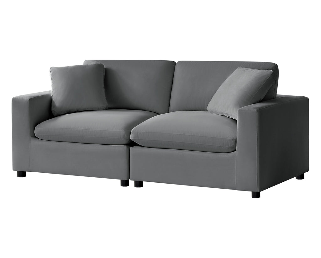 - Introducing the ultimate in comfort and versatility - our Caylie 2-piece Modular sofa, designed to elevate your home living experience. Crafted with a sturdy solid hardwood frame, this sofa is built to last and withstand the rigors of everyday family life. Upholstered in a variety of plush fabric options, each offering a luxurious look and feel that is both family and pet friendly. This item includes (2) corner wedges.