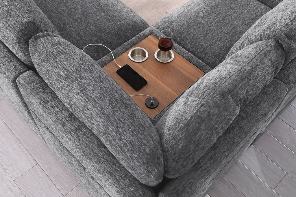 - Corner Console with 2 Cupholders and 1 USB C & 1 USB A Charging Port
