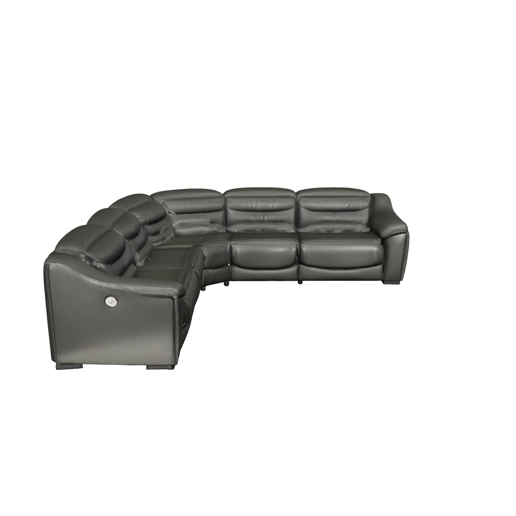 For those seeking to curate a living room retreat that offers superior comfort and a contemporary aesthetic, this sleekly designed power reclining sectional will become your favorite source of at-home serenity. Rest on combination leather and faux leather upholstery, and use the one-touch power control to recline and adjust the headrests with ease. As you recharge after a long day, your devices can too with USB charging. This sectional is visually enticing in a stunning cream color, with slope track arms and stitched detailing on the back to enhance its modern appeal.