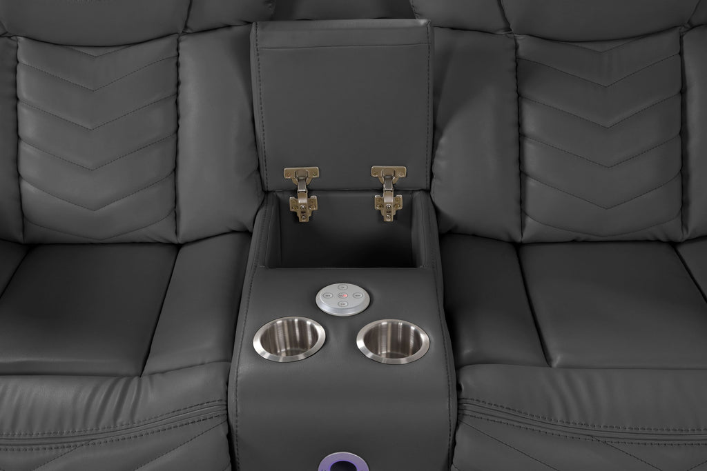 Introducing a stunning sectional sofa that combines comfort, style, and innovation seamlessly. Crafted with a sturdy manufactured wood frame, this luxurious sofa features a sleek faux leather finish that exudes sophistication. Take relaxation to the next level with its power recliner feature, allowing you to effortlessly find your ideal position. But that's not all this sectional sofa also comes equipped with stainless steel cup holders for added convenience, USB ports for charging your devices, and a control panel for the LED and Bluetooth features, transforming your living space into a modern entertainment hub. Elevate your lounging experience with this exceptional piece of furniture.