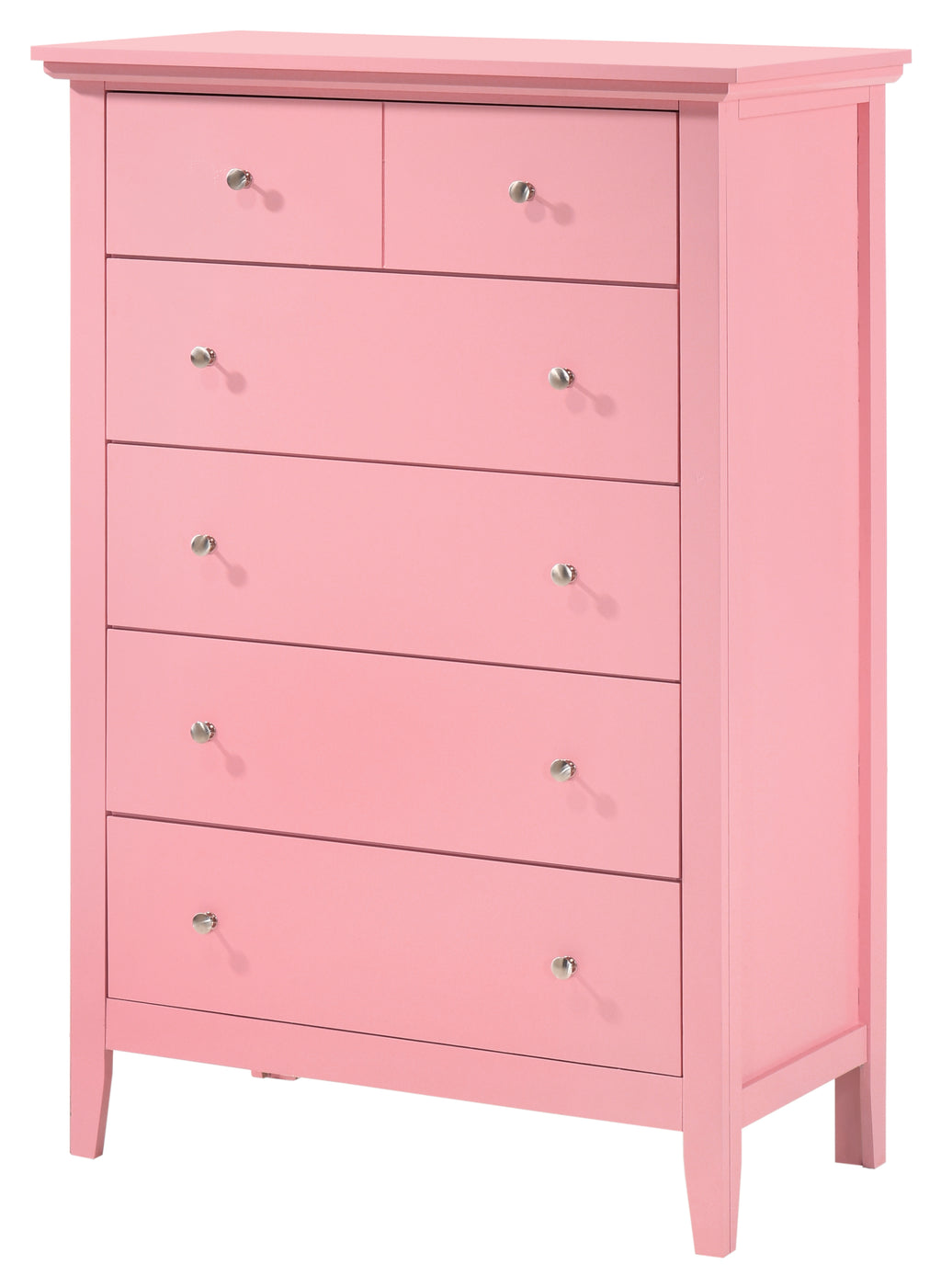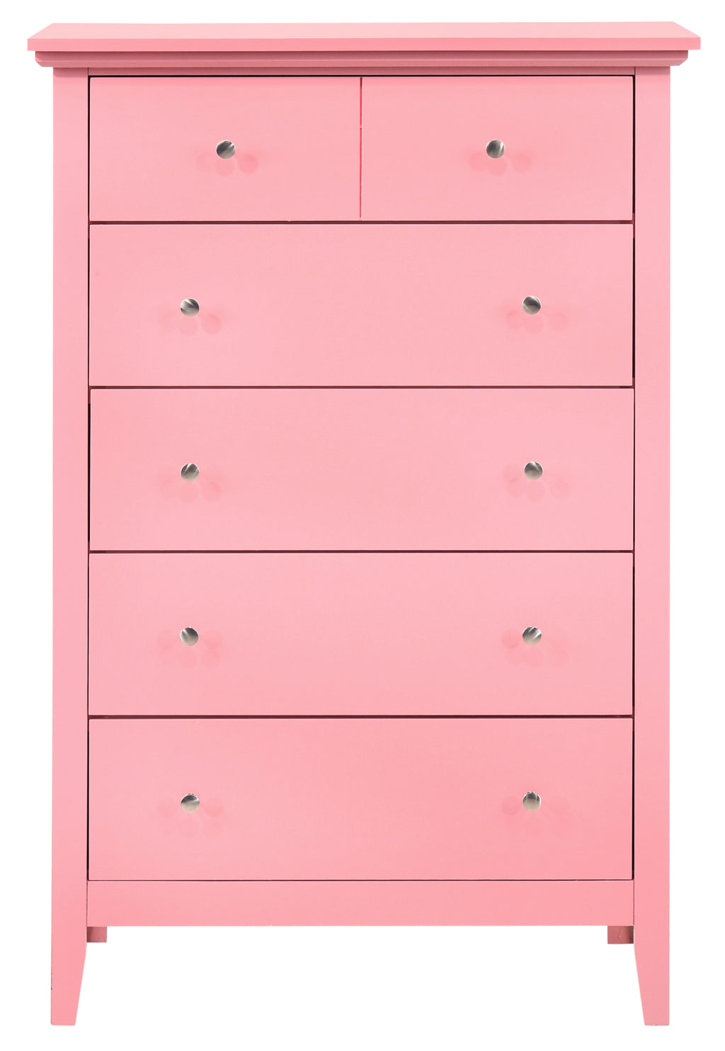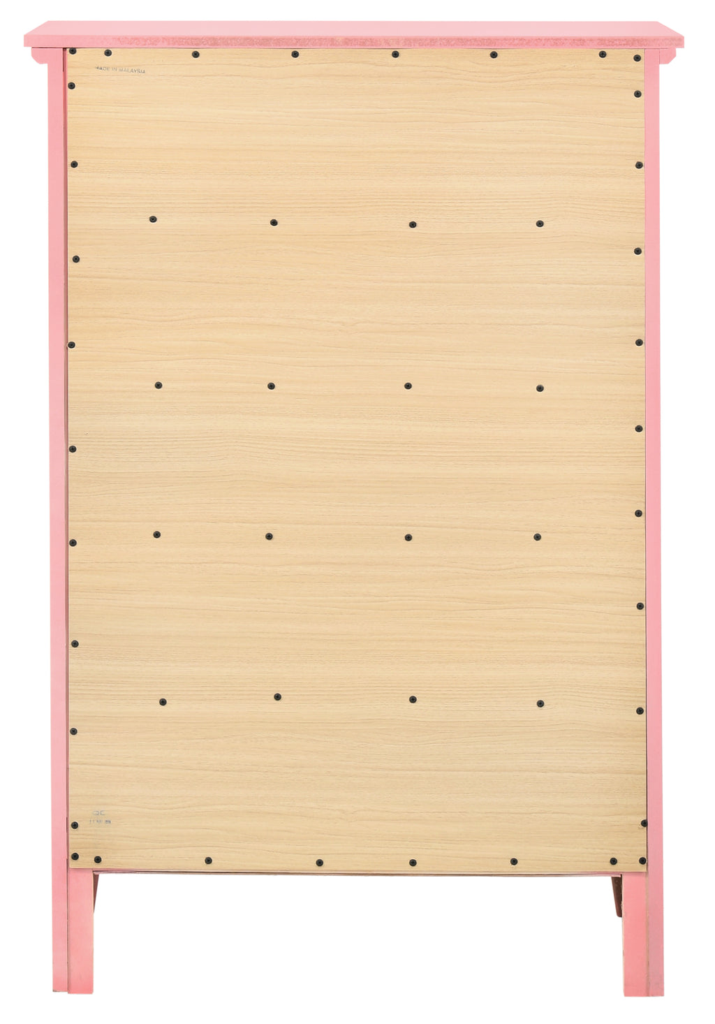 This lively pink chest injects a dynamic touch into any modern space while maintaining a functional profile. Constructed from resilient wood veneers, it provides an attractive alternative to traditional furnishings, ensuring a delightful visual experience. The well-designed dovetailed drawers enhance the chest's overall durability and optimize the storage of your personal belongings.