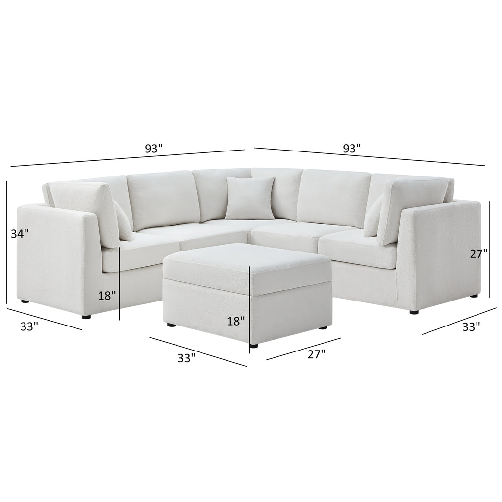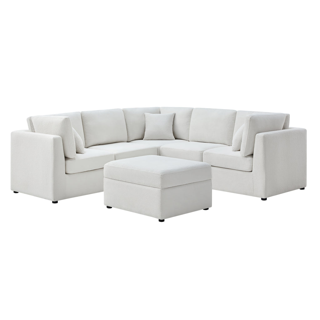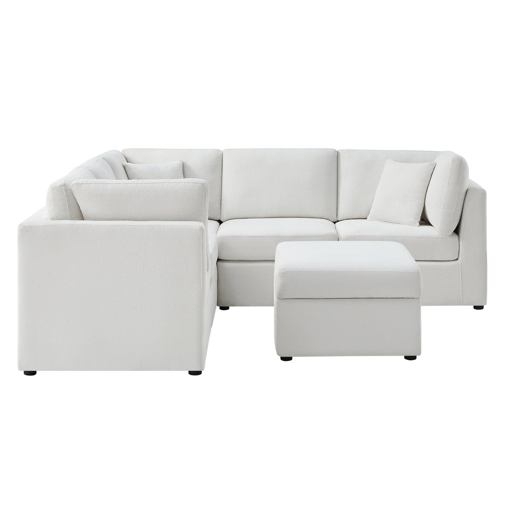- Experience ultimate comfort and versatility with our Chauncy modular 6-piece sectional, designed for the modern home. Crafted in family- and pet-friendly, commercial-grade performance fabric, it’s easy to clean, durable, and soft to the touch. Available in two versatile shades—Ivory or Gray—it seamlessly fits into any décor. Elevate your living room with this timeless, functional piece today! The Chauncy 6-piece Sectional includes (3) corner wedges, (2) armless chairs, and (1) storage ottoman.
