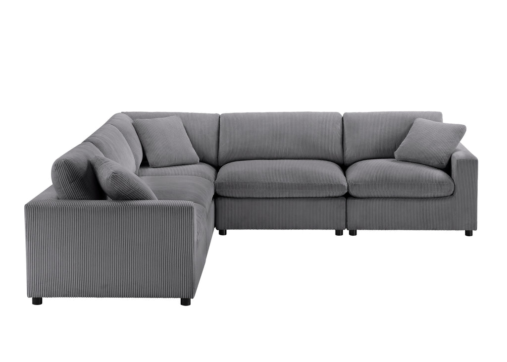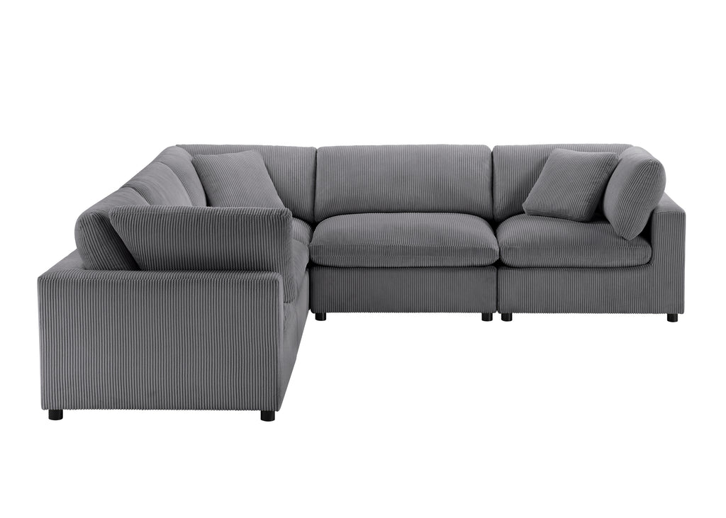 - Introducing the ultimate in comfort and versatility - our Chelsea Modular 5-piece Sectional, designed to elevate your home living experience. Upholstered in a variety of plush fabric options, each offering a luxurious look and feel that is both family and pet friendly. Experience the convenience of easy-to-clean, family friendly furniture without compromising on luxury. This sectional includes (2) armless chairs, and (3) corner wedges with three matching throw pillows.