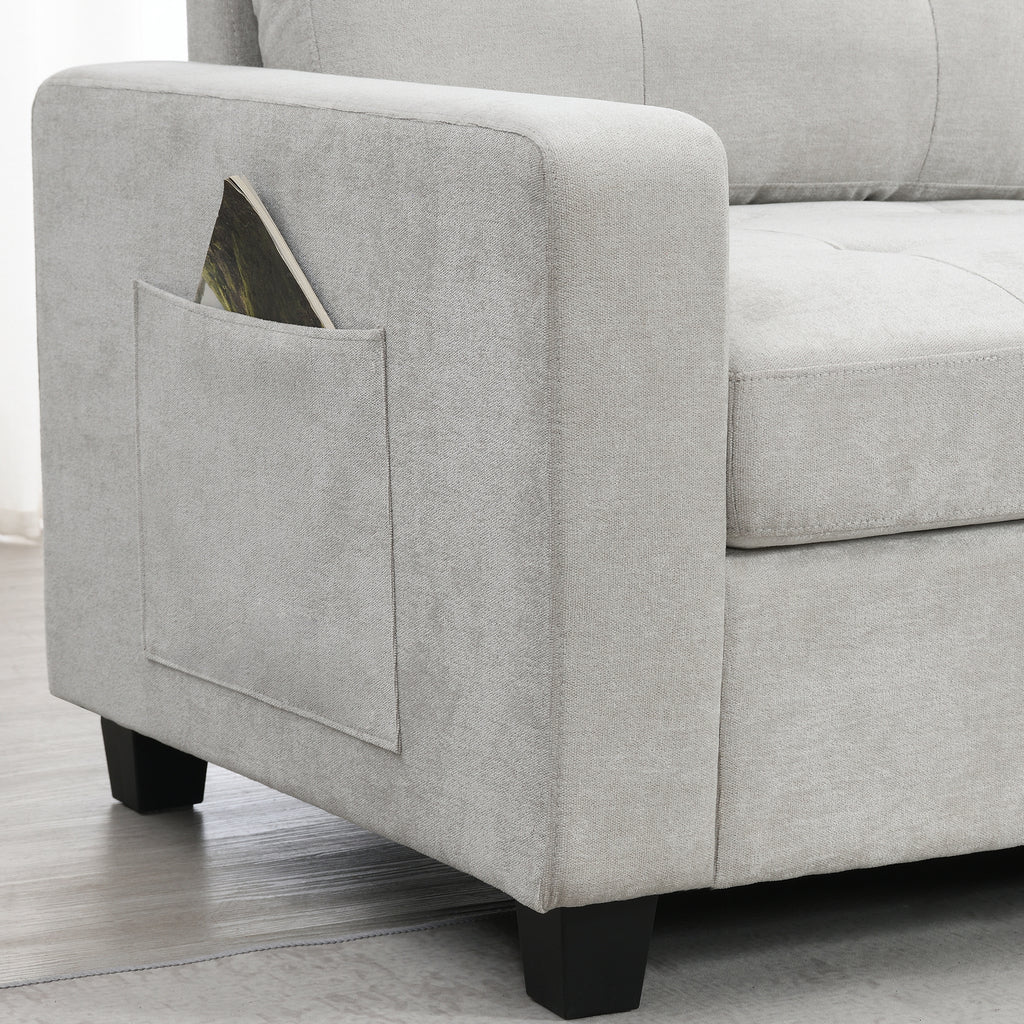 - Dual Side Storage Pockets: Designed with storage pockets on both sides, this sofa makes it easy to keep essential items like books, magazines, or remote controls within reach. These side pockets are practical for everyday use, helping to reduce clutter and make your living space more organized.