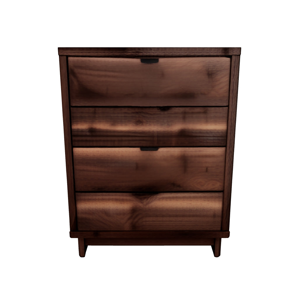 Nostalgic style, retooled for today’s trends. This chest of drawers puts an elevated twist on mod aesthetics. Its warm brown tones reflect the mid-century vibes you love, while the angular base incorporates contemporary motifs. Integrated drawer handles round out the look in sleek style. With this chest, you can build your bedroom into a modern haven with a touch of retro-cool flair.