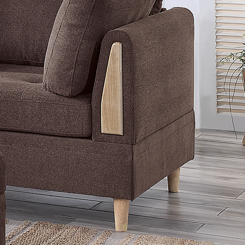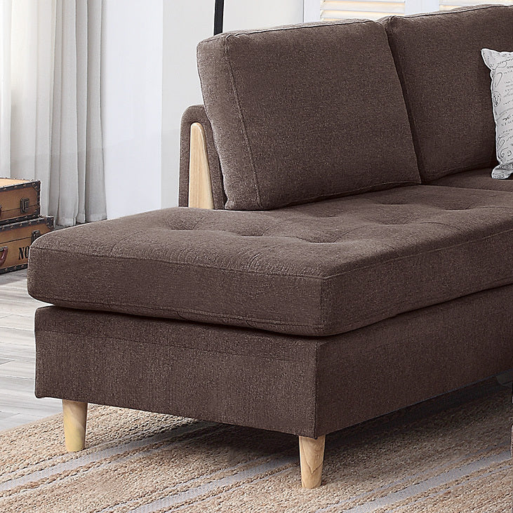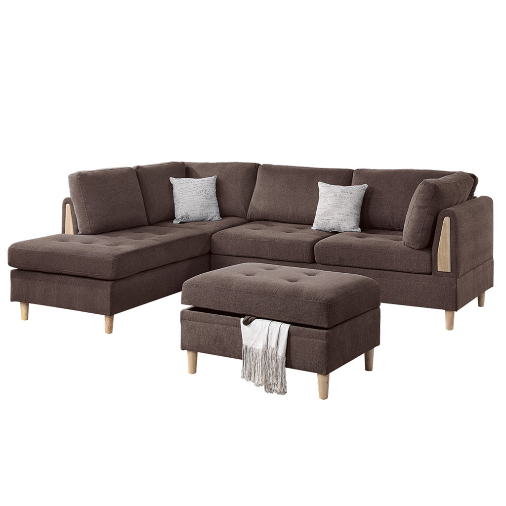 3pc Reversible Sectional Sofa Set W/ Storage Ottoman-Chocolate
