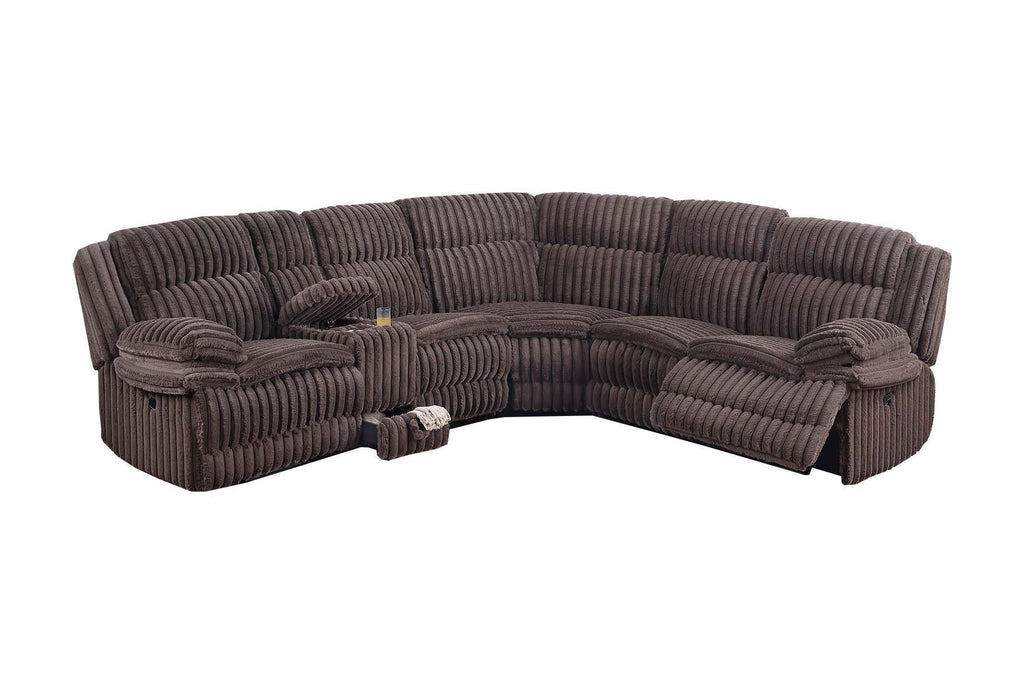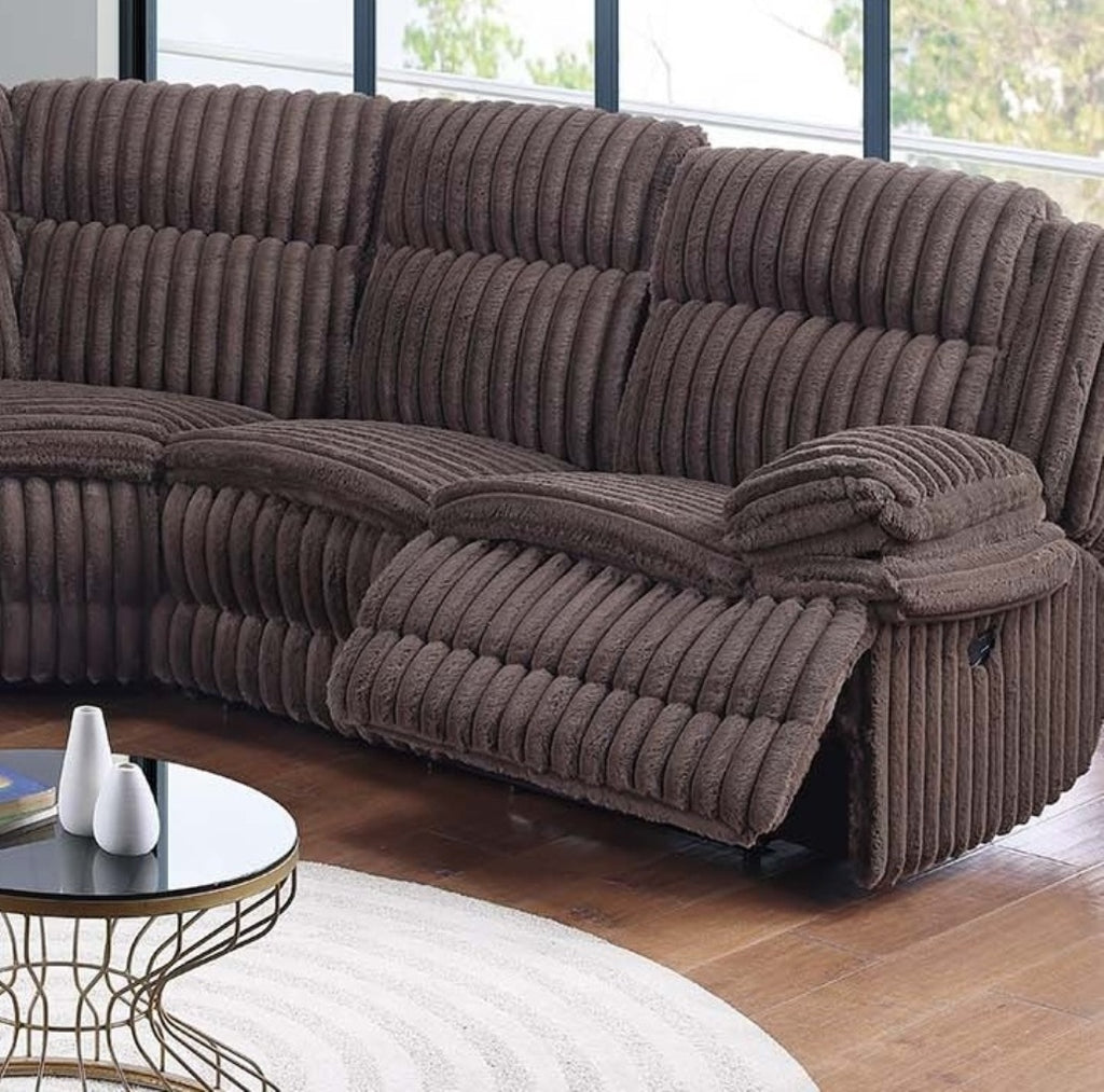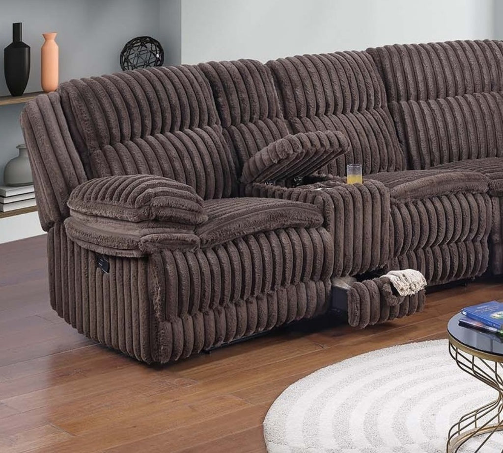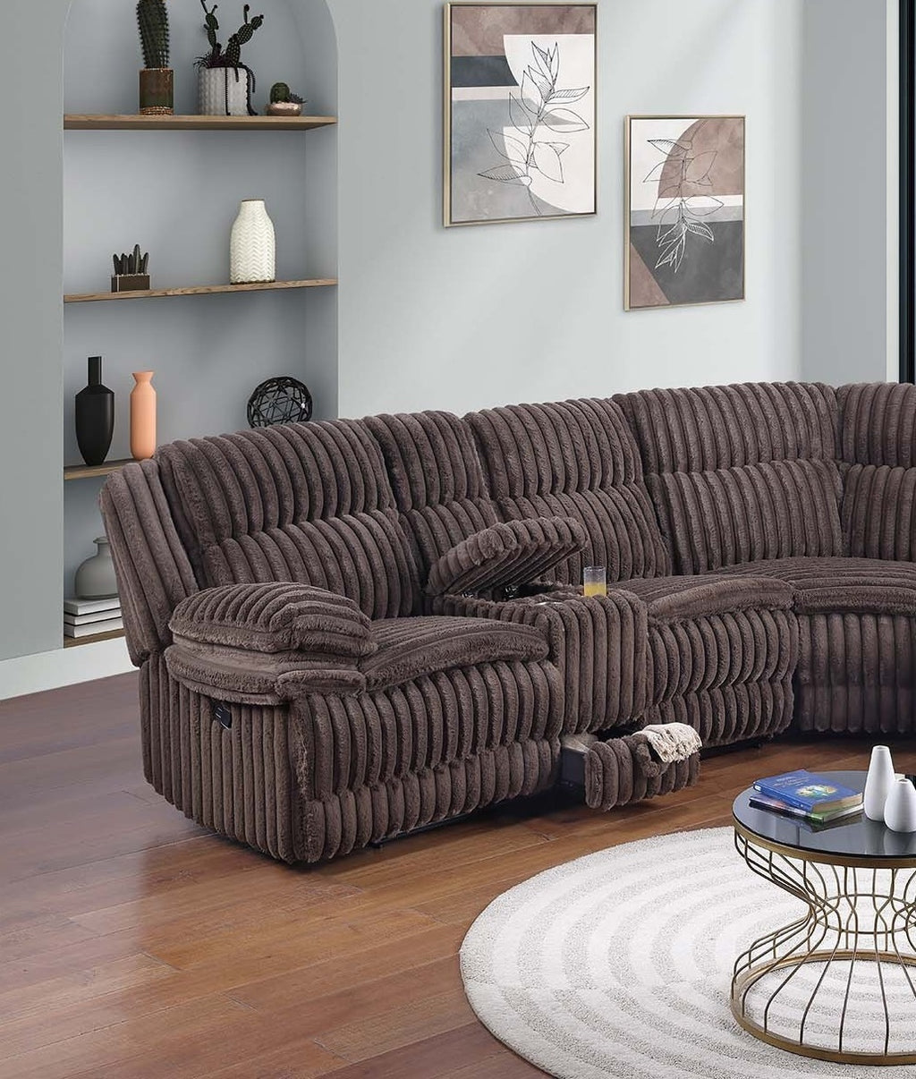 Designed to provide a cozy seating experience, this U-shaped sectional is upholstered in luxurious fur-like corduroy, offering a soft and inviting texture that complements its sleek design. The sectional is thoughtfully crafted with plush, thick armrests that cradle you in comfort while adding a touch of elegance to your living space. Both the left-arm-facing loveseat and right-arm-facing loveseat feature manual reclining mechanisms, conveniently located on the sides of the armrests. With just a simple pull of the handle, you can effortlessly recline into your ideal lounging position. The corner wedge completes the U-shaped design, providing ample seating space for family and friends to gather. The sectional includes a center console equipped with two cup holders, perfect for keeping your favorite beverages within reach during movie nights or relaxation time. The console also features a spacious storage compartment, ideal for stowing away remotes, magazines, or other essentials. Additionally, a small storage space at the base of the console adds extra convenience for organizing smaller items. Whether you're entertaining guests or enjoying a quiet evening at home, this recliner sectional is designed to provide unmatched comfort and timeless appeal.