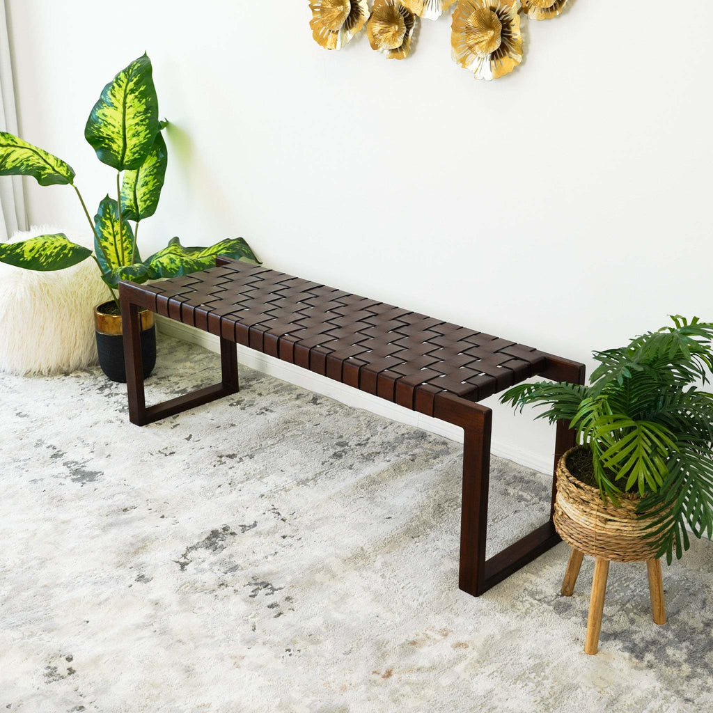 - A Mid-Century modern update to a retro classic, the Christina upholstered bench is gorgeously adaptable. Its seat cushion is crafted of high-quality Genuine Leather provides comfortable sitting for up to 2.