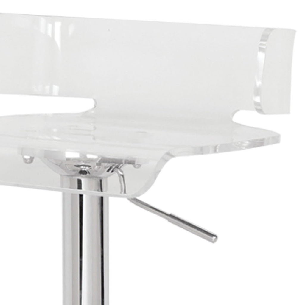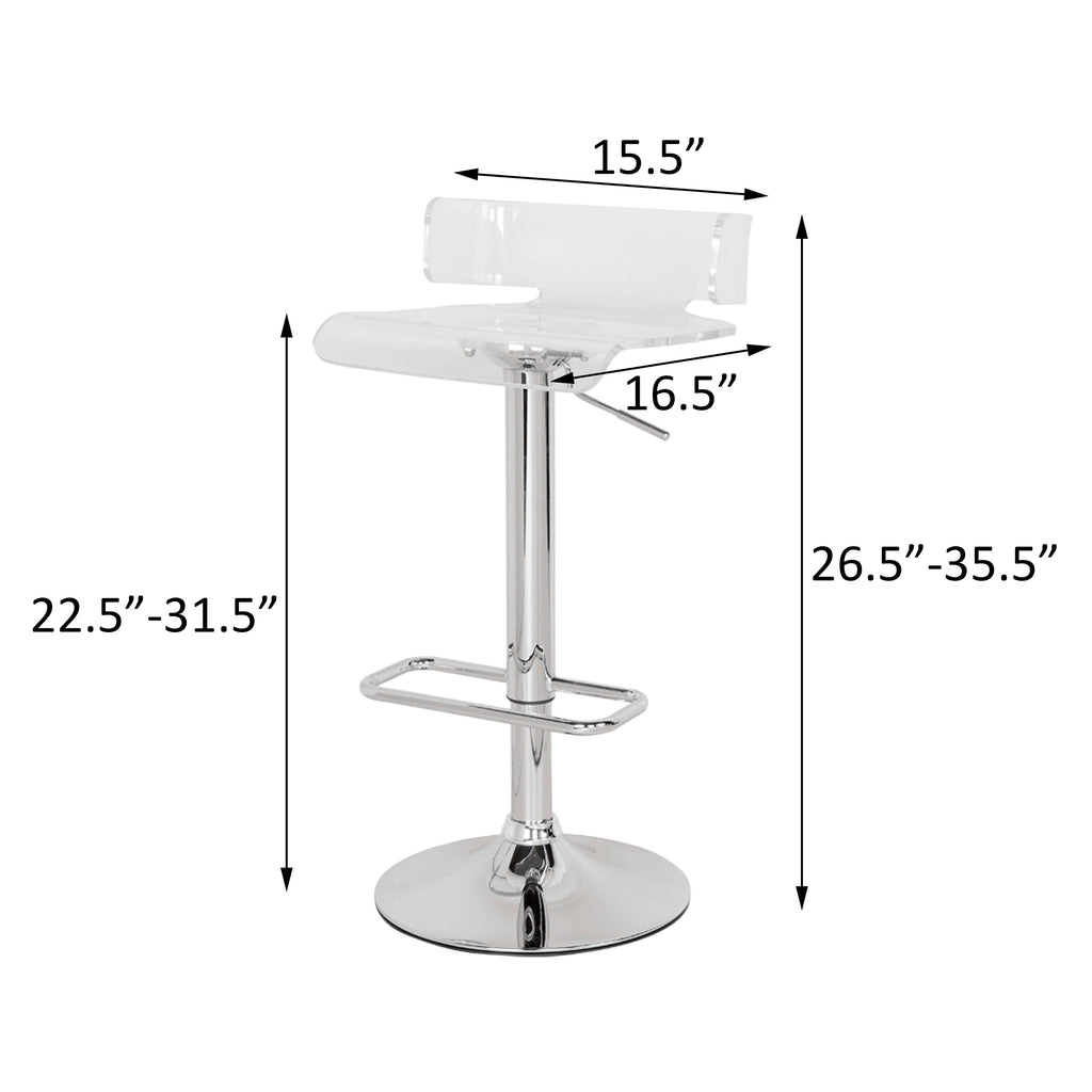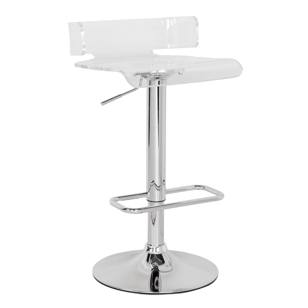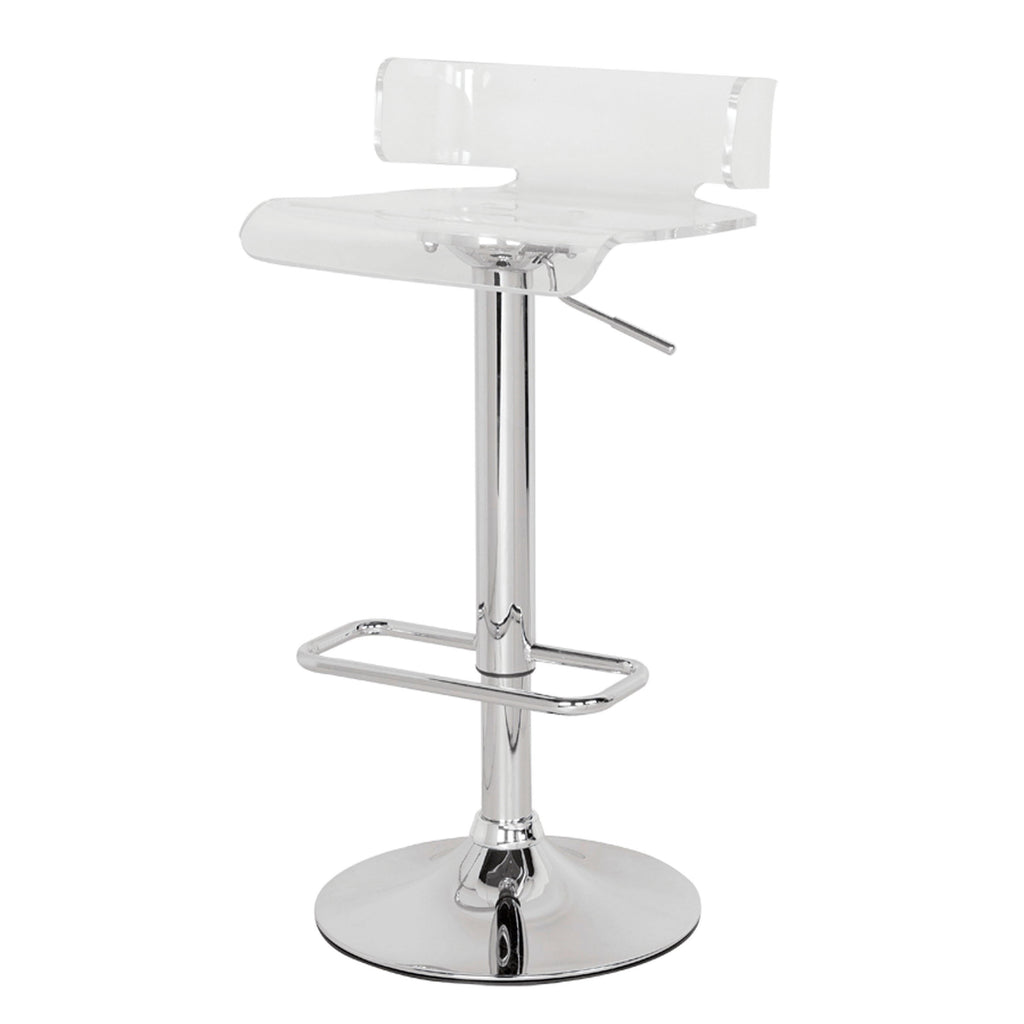 Discover modern comfort with our adjustable stool, featuring a sleek acrylic seat and a low backrest for stylish support. With a 360⁰ swivel seat and adjustable height lift, this stool is complemented by a sturdy metal base and footrest, all set on an ABS round base for stability and contemporary flair.