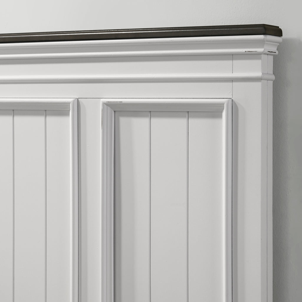 - English dovetail drawer construction with full extension metal ball bearing drawer glide. 5-step process weathered white finish with preserving lacquer top coat, dark Gray finished top panel