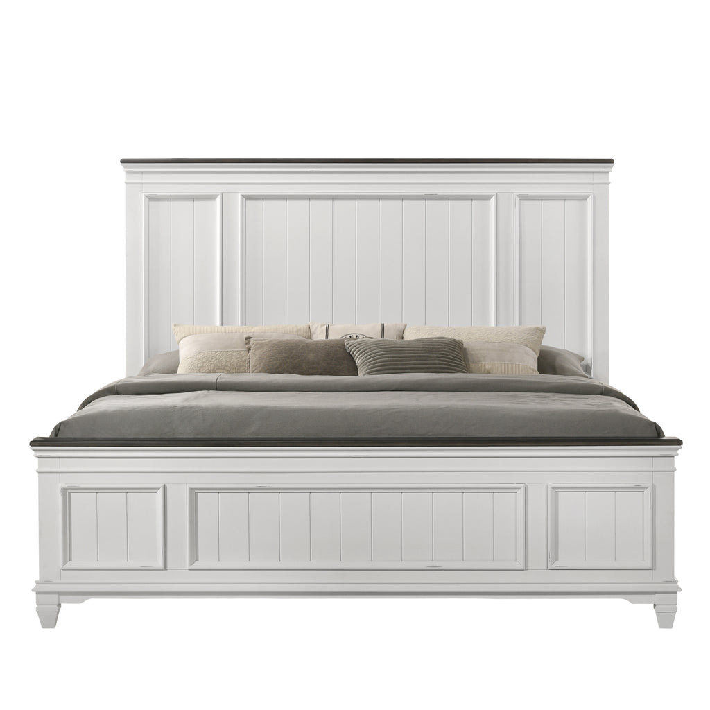 - Classic lines and shiplap panel details on the bed