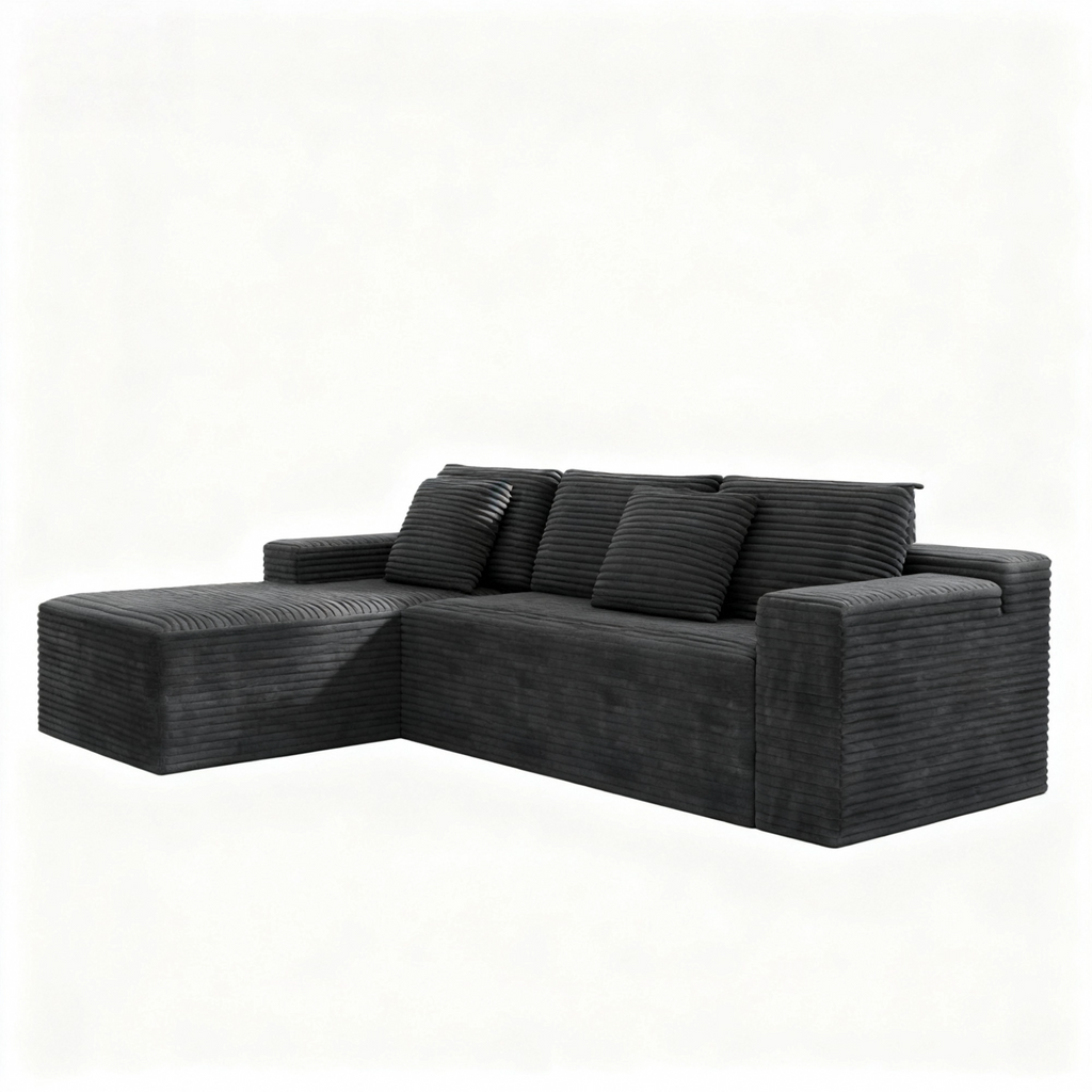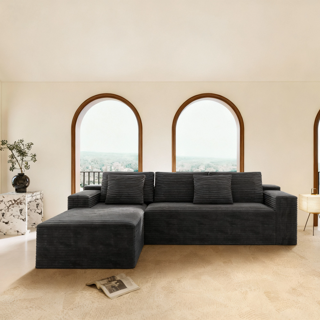 - Modular Sectional Sofa:This sectional sofa featuring a sleek design, clean lines, and high-quality plush corduroy Fabric,This sectional set maximizes space when placed against a wall,this corner sofa effortlessly adds a timeless and sophisticated touch to your home. Designed to be the focal point of attention, it's an ideal choice for elevating the ambiance of living rooms, apartments, and bedrooms.