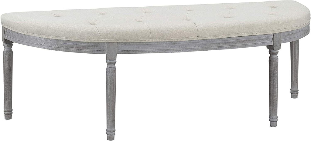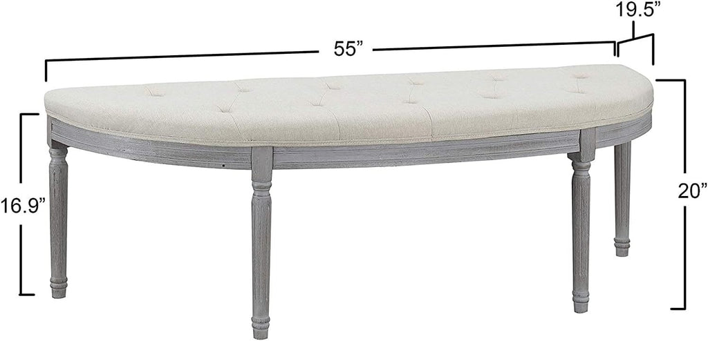 - Features a half crescent design with button tufting for a decorative touch