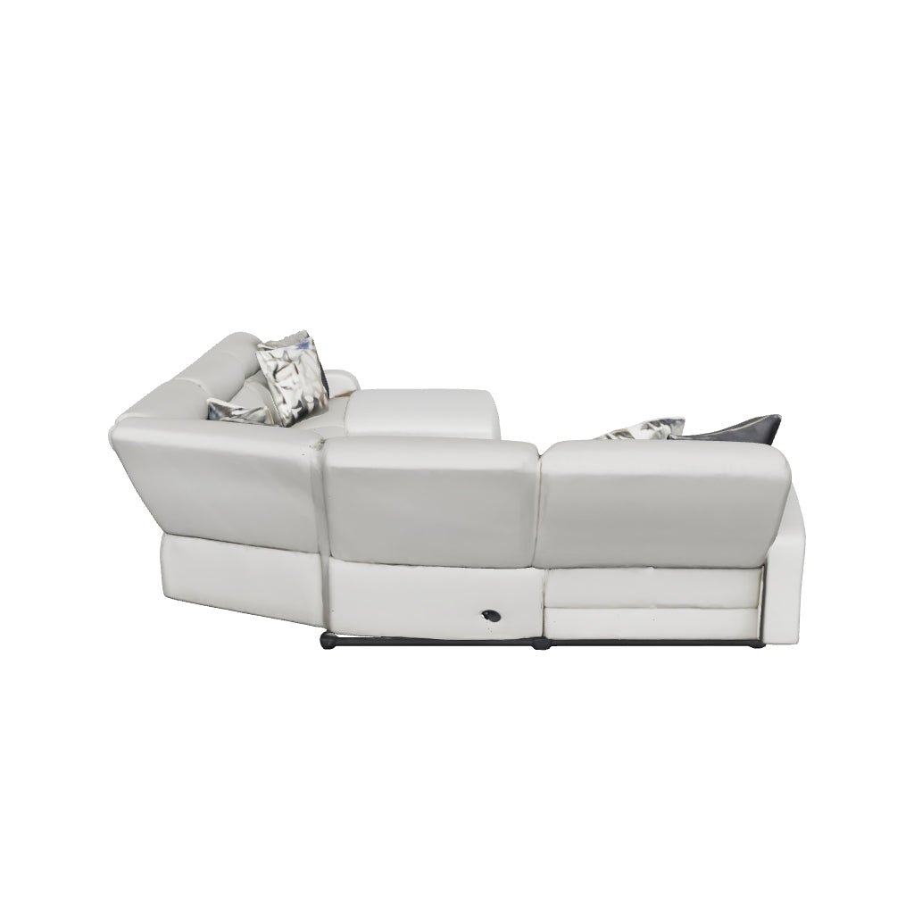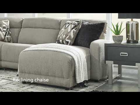 Delightfully modern. Exceptionally comfortable. When it comes to modular furniture with easy-elegant appeal, it’s hard to beat this power reclining sectional. Wrapped in a decadently plush stone-tone fabric for neutral versatility, this chic sectional is dressed to impress with a clean-lined divided back, curved track arms and a low-profile back for a relaxed, contemporary aesthetic.