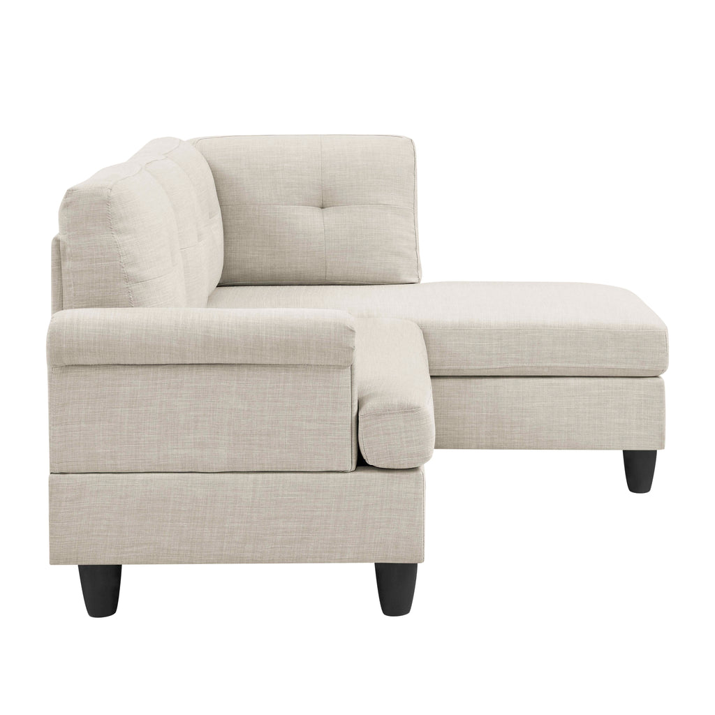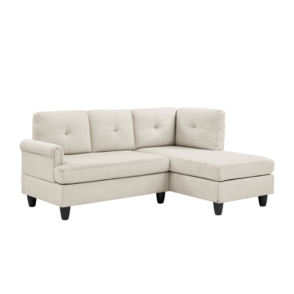 - This right-hand-facing sofa-and-chaise sectional has a modest size that still has a classic look and seats three.