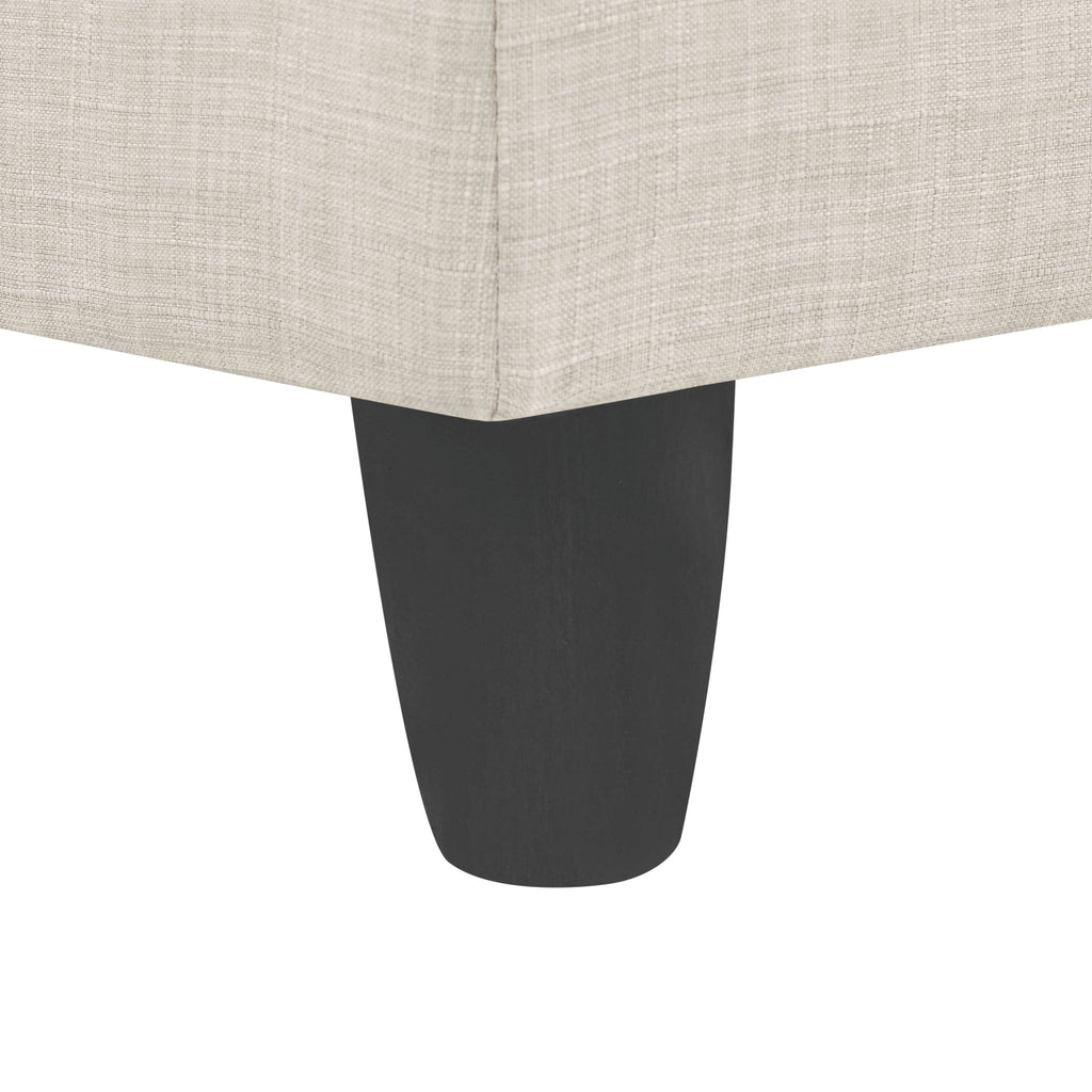 - It's crafted with an engineered wood frame that sits on circular block feet with a black finish.