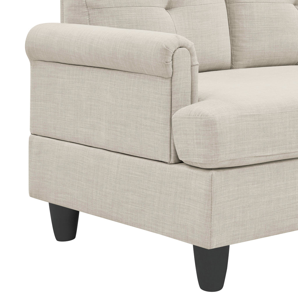 - This sectional is wrapped in 100% polyester, and the cotton and foam-filled cushions support you as you sit.