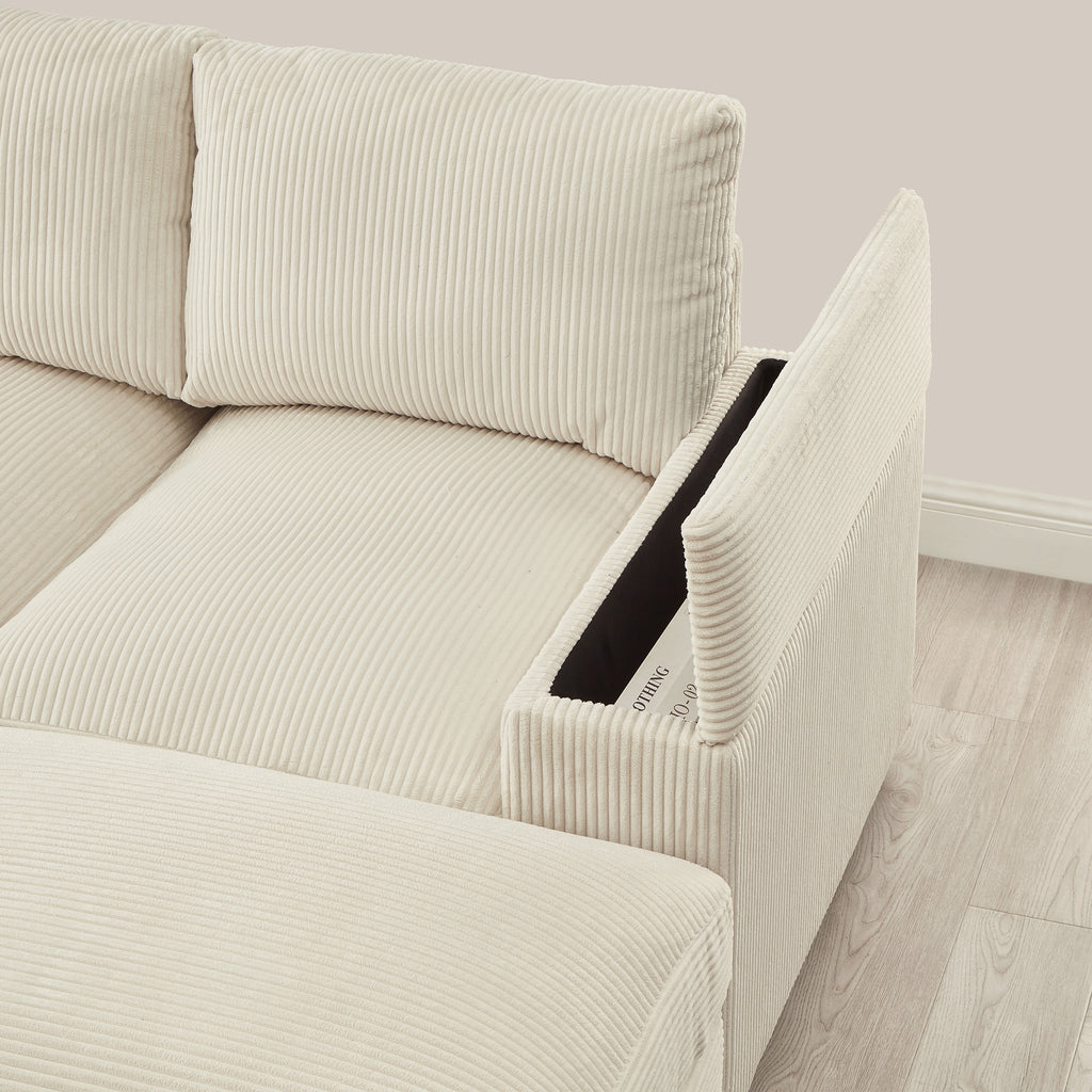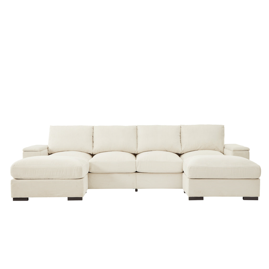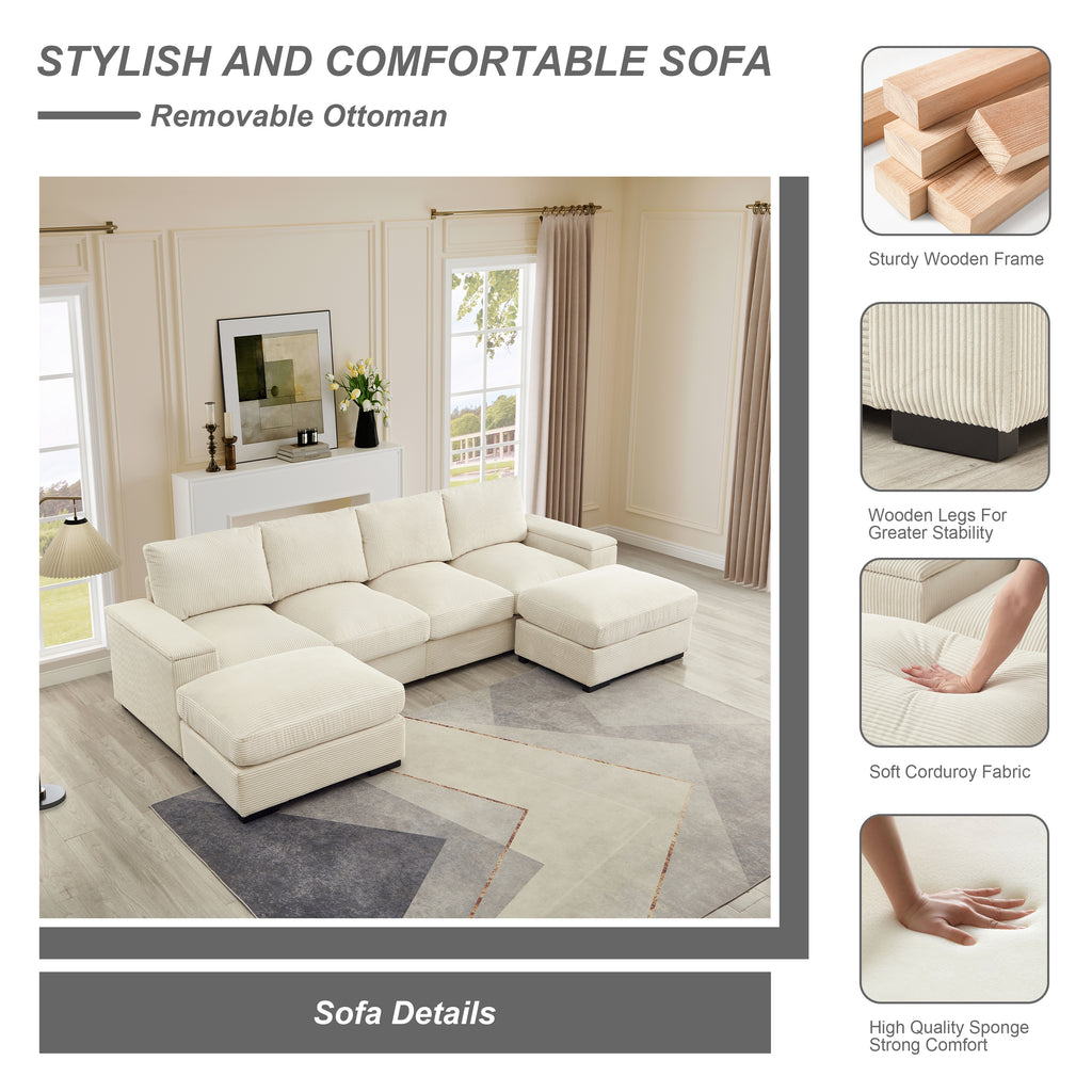 - Spacious Sofa: This u shaped sectional sofa is made with a sturdy solid wood frame and cushions filled with high-density sponge and wrapped in corduroy fabric.