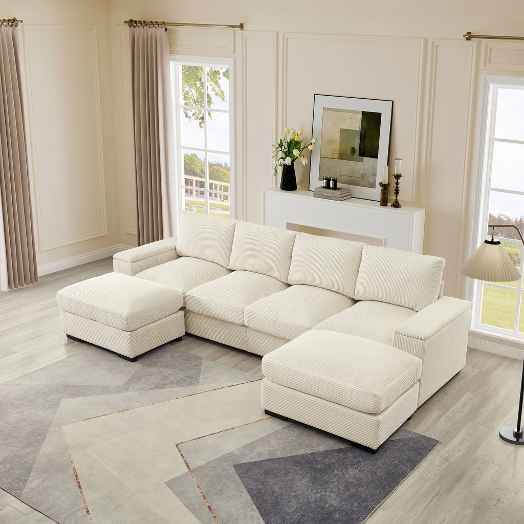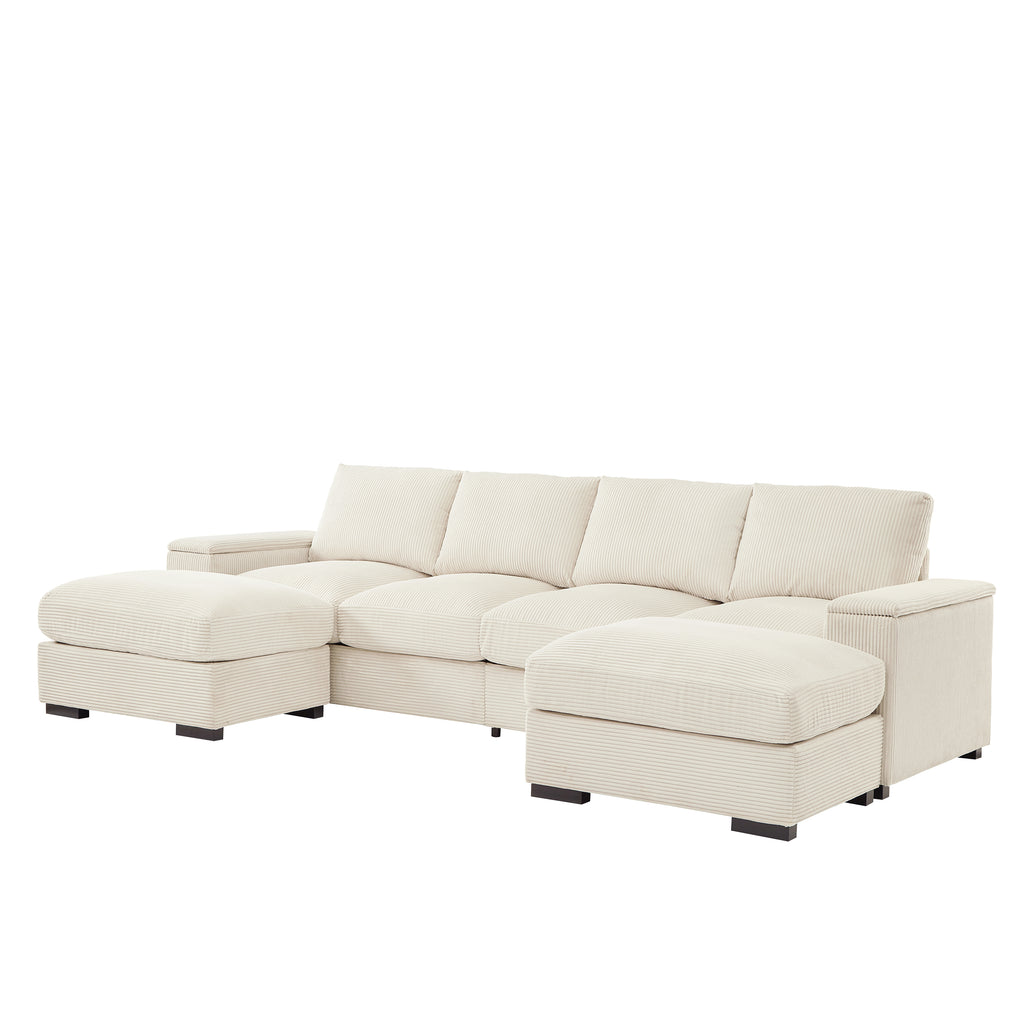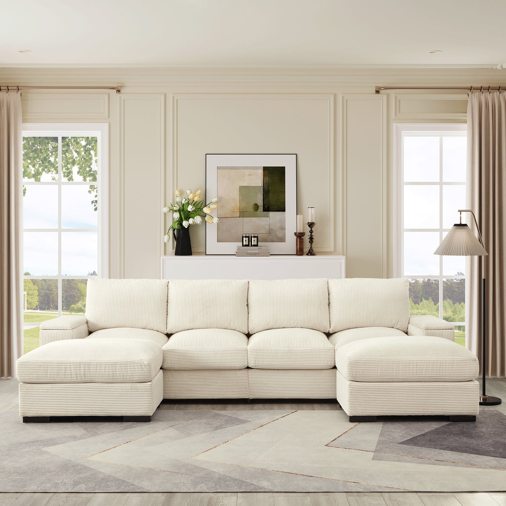 - Spacious Sofa: This u shaped sectional sofa is made with a sturdy solid wood frame and cushions filled with high-density sponge and wrapped in corduroy fabric.