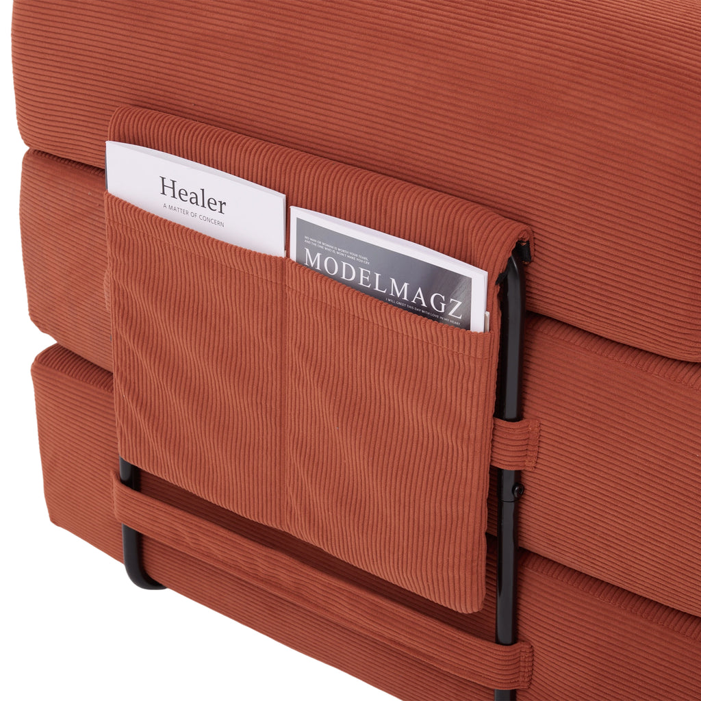 - A storage pocket is attached to the frame, keeping magazines, remote controls, or tablets within easy reach. This keeps your living area tidy and functional.