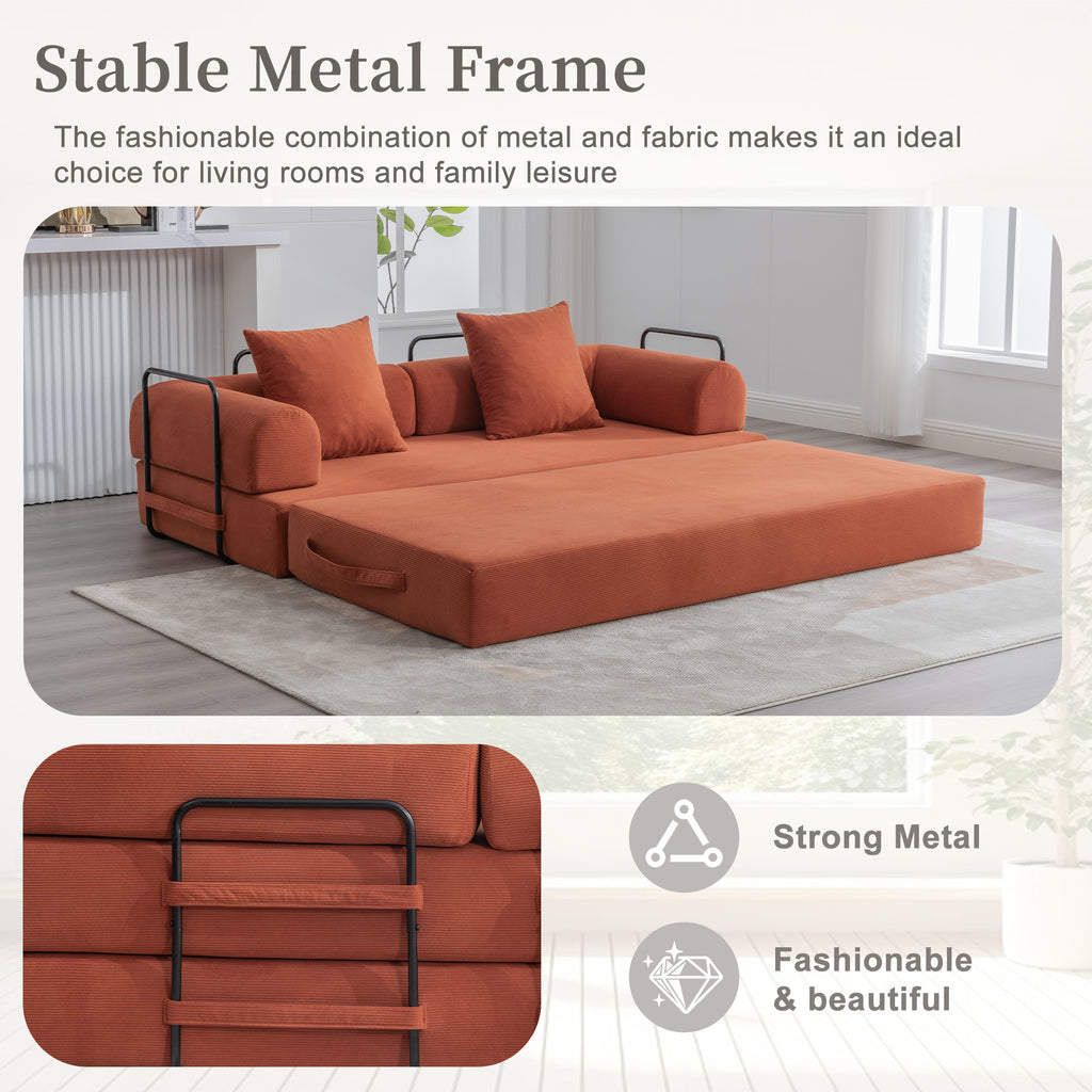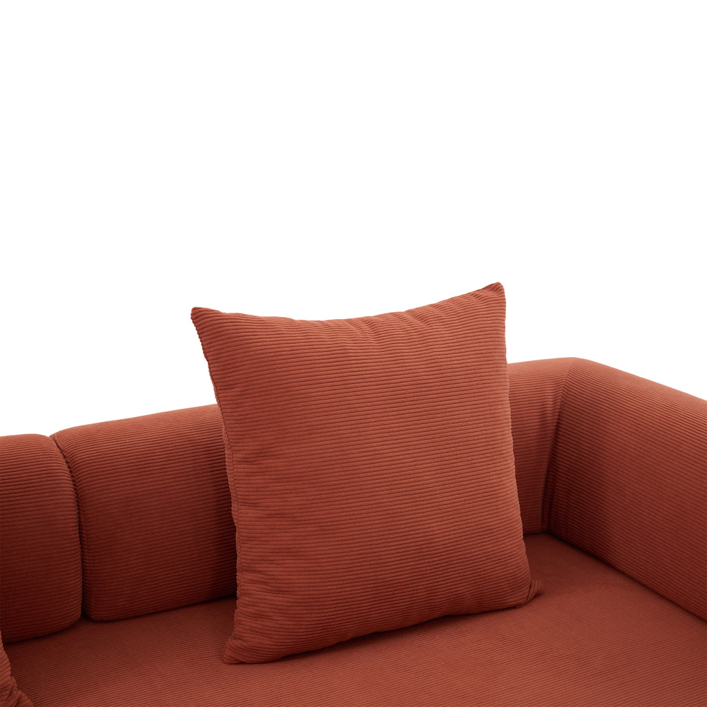 This sofa is equipped with a stable metal frame. It not only ensures durability but also creates a modern contrast when paired with the fabric cover. The combination of fabric, metal, and cushions creates a cozy atmosphere,making it ideal for stylish living spaces.