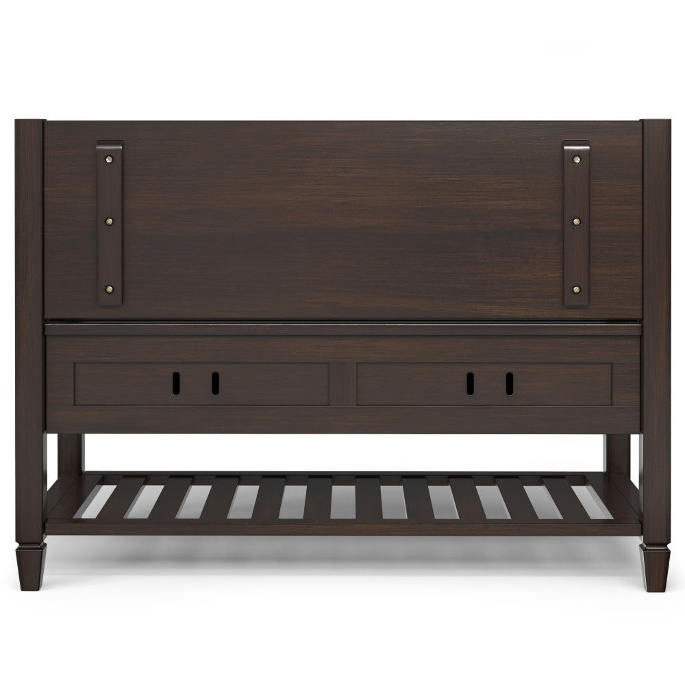 - Traditional design includes vintage raised panels, notched legs and a style reminiscent of the historic British Colonial style
