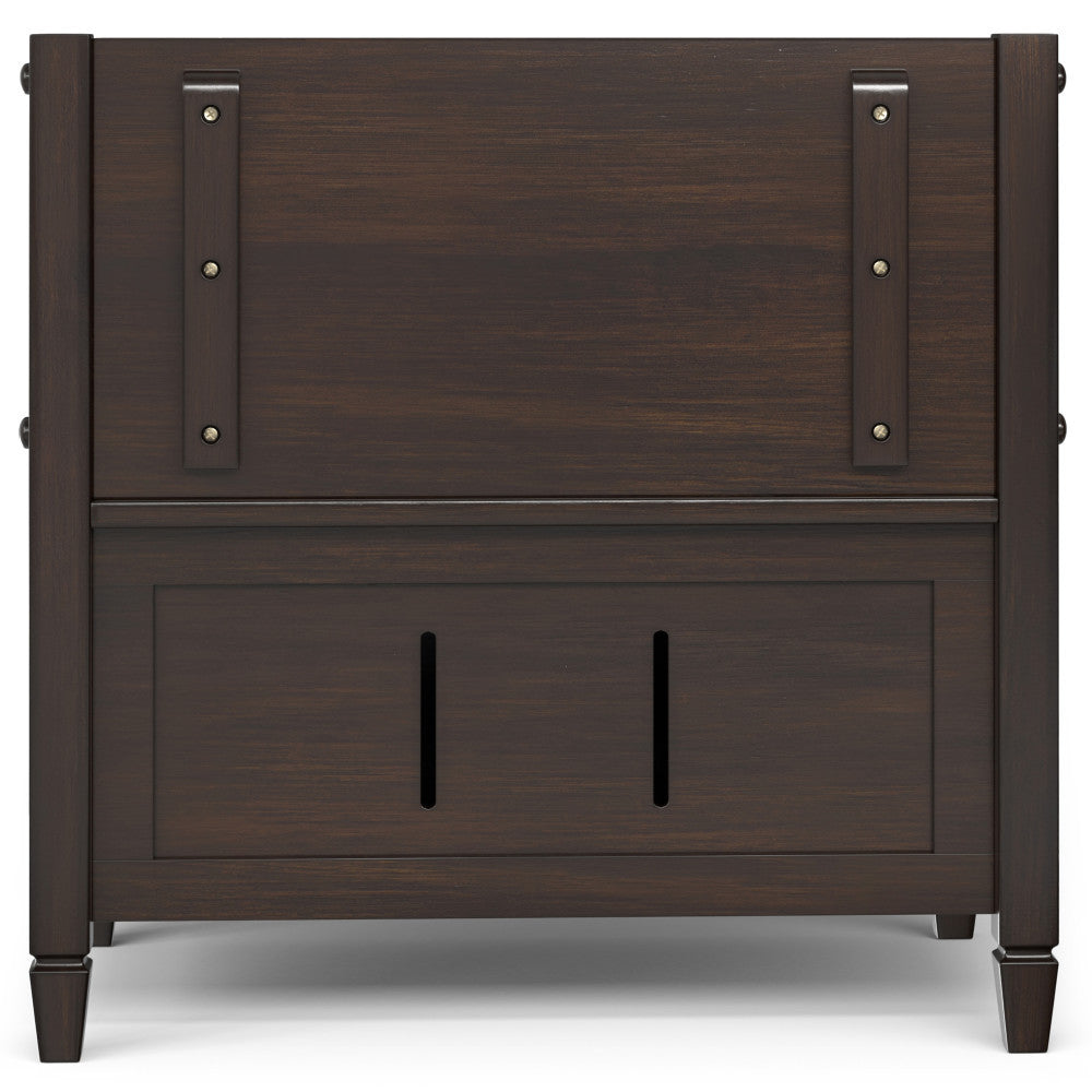 - Hand-finished with a Dark Chestnut Brown Stain and a protective NC lacquer to accentuate and highlight the grain and the uniqueness of each piece of furniture.