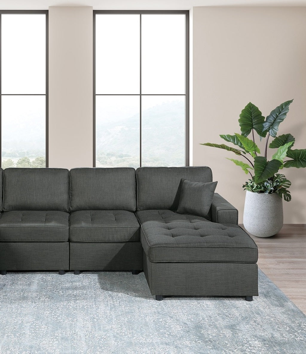 Whether you're entertaining guests or enjoying a quiet evening in, the 3-Piece Sectional Set promises to be a centerpiece of comfort and elegance in your home. Experience the perfect blend of form and function with this versatile addition to your living space. This sectional features a RAF/LAF Chaise and two armless chairs strategically arranged to create an inviting armless loveseat. The Dorris Fabric material's subtle texture adds depth to the overall aesthetic, making it a perfect fit for modern and contemporary interiors alike. The dimensions are thoughtfully crafted to fit seamlessly into various room sizes. The RAF/LAF Chaise provides ample space for stretching out and lounging comfortably. Elegant square arms frame the sectional, offering both support and a clean, structured look that complements the tufted seats. The low-profile design adds a touch of sophistication while maximizing seating space without overwhelming your room's layout. Included with the sectional are two matching throw pillows, enhancing both comfort and visual appeal. Their complementary fabric and design tie the ensemble together, creating a cohesive look that elevates your living room's style.