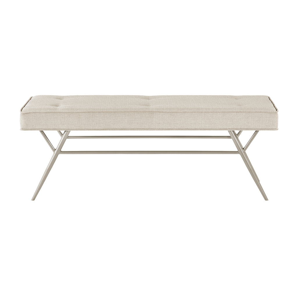 Add a touch of contemporary elegance and versatile seating to your home with this stylish upholstered bench. Featuring a plush foam-cushioned seat wrapped in soft, textured fabric with chic button tufting, it offers exceptional comfort and a sophisticated look. The sturdy iron metal legs, finished in a chic champagne tone, provide robust stability and a modern aesthetic. Perfect for an entryway, at the foot of a bed, or as extra seating in a living room, this bench combines sophisticated design with practical functionality. With a generous 300lb weight capacity, it's both durable and fashionable. While assembly is required, its eye-catching design makes it a striking and comfortable addition to any modern interior.