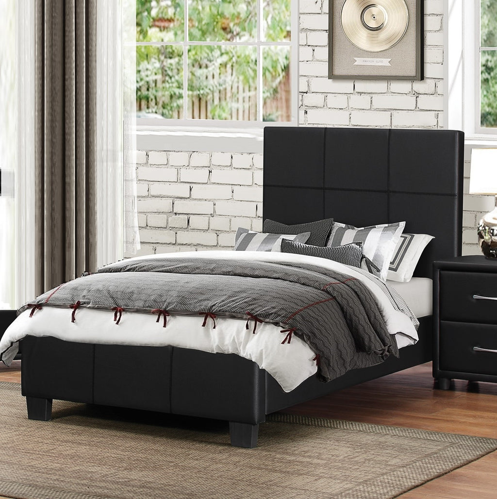 The contemporary design of the Lorenzi Collection is enhanced by the addition of the durable black faux leather covering of the twin bed’s exterior. This collection will provide a unique and stylish addition to your bedroom.