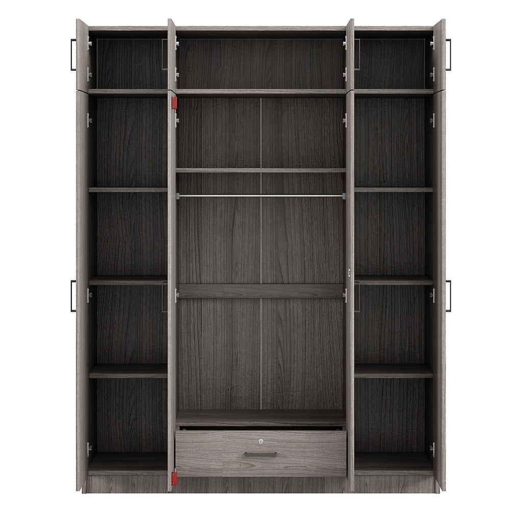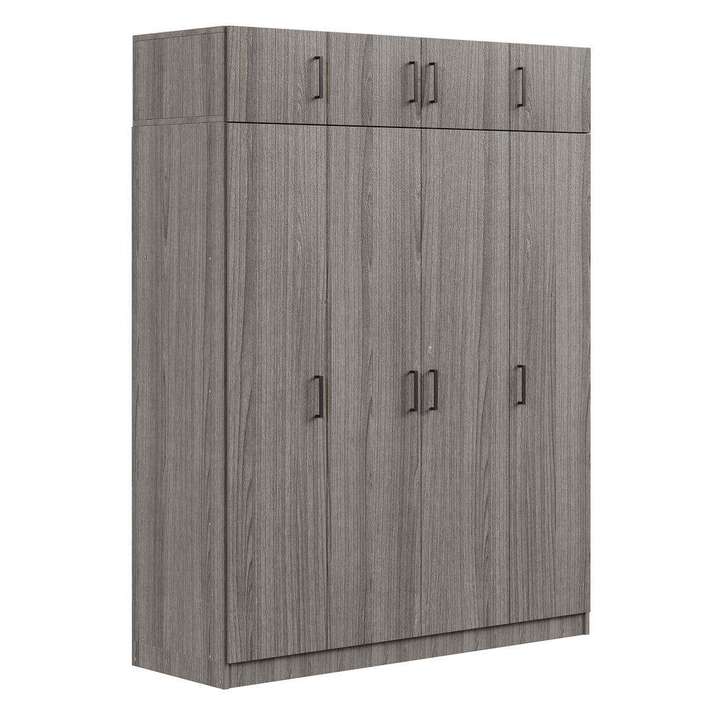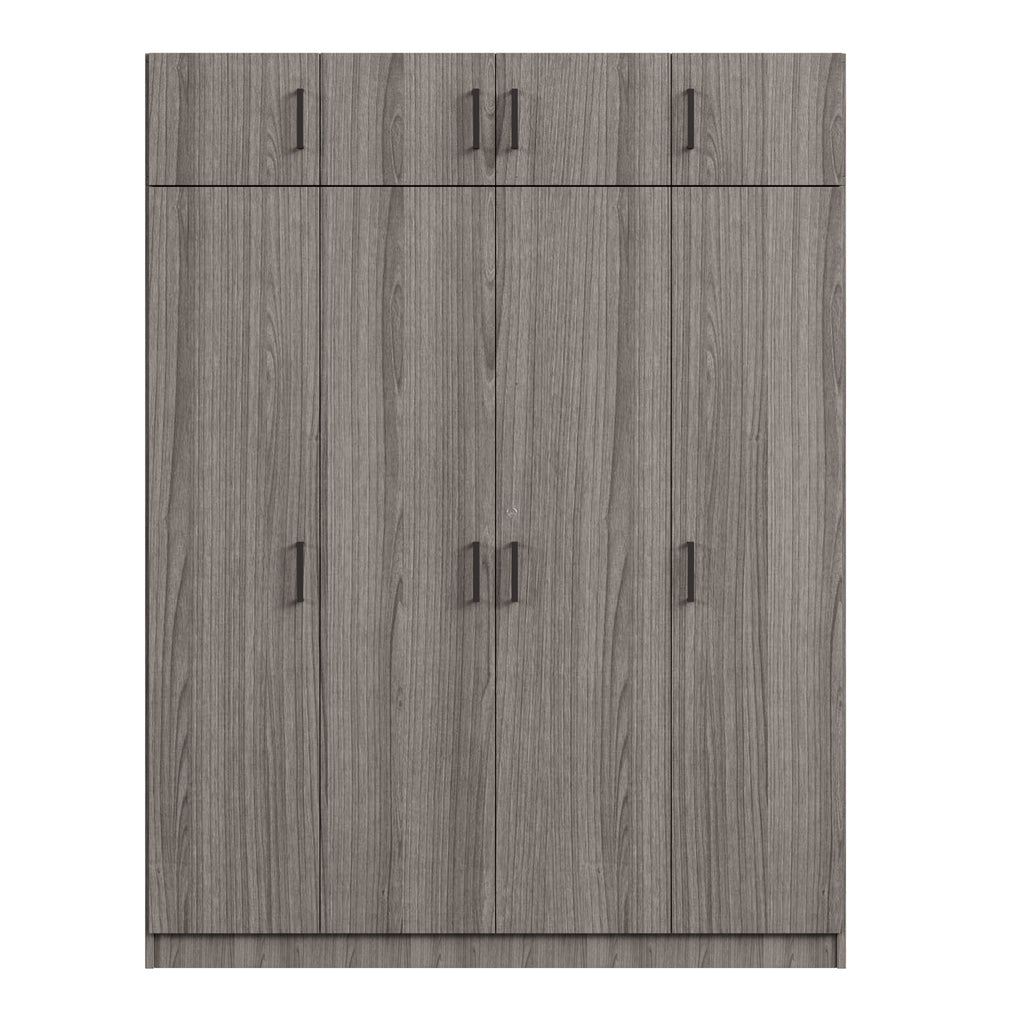 4-Door Wardrobe with 1 Drawer and Top Cabinet , Gray