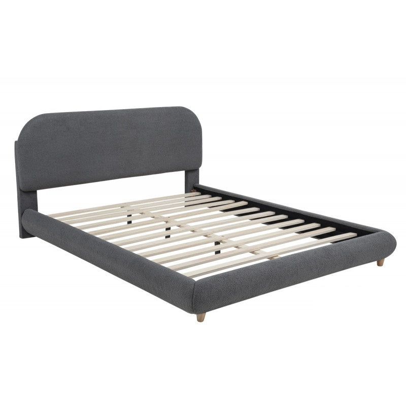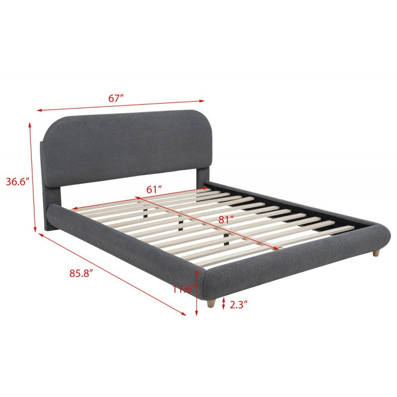 Elevate your bedroom with this contemporary queen fleece platform bed, featuring a sleek low-profile design. Crafted from durable wood with plush gray fleece upholstery, it offers modern style and exceptional comfort. Enjoy a restful sleep without a box spring, making setup simple and stylish.