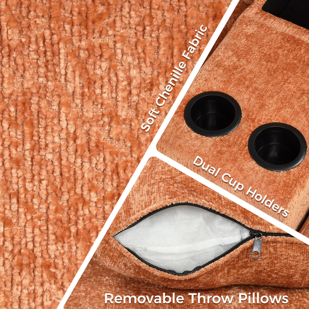 - Premium Chenille Upholstery - Wrapped in luxurious chenille fabric, this sofa offers an exceptionally soft and plush feel, bringing a warm and inviting touch to your living space. The breathable, skin-friendly texture ensures year-round comfort, while the durable, easy-to-maintain fabric resists wear and tear, making it perfect for daily use.