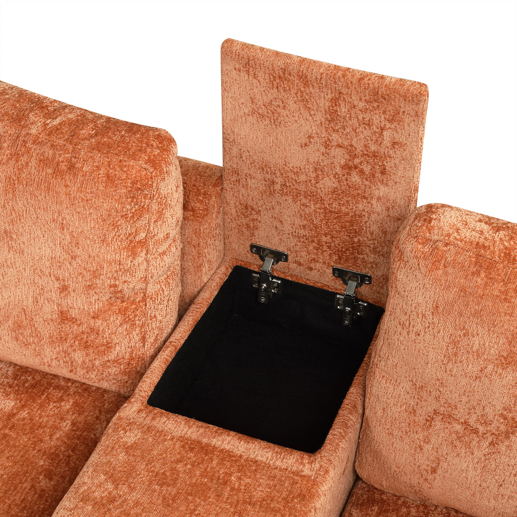 The hidden storage box inside the armrest provides a discreet place for remotes, books, or other small accessories.