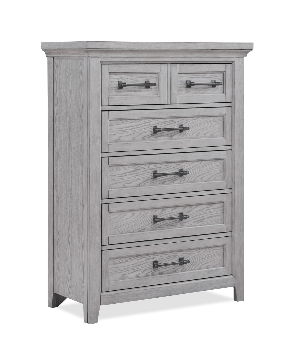 This collection chest is an elegant and stylish piece of furniture designed to enhance the aesthetic of any bedroom. Its light gray finish adds a touch of sophistication and versatility, allowing it to seamlessly blend into various decor styles.