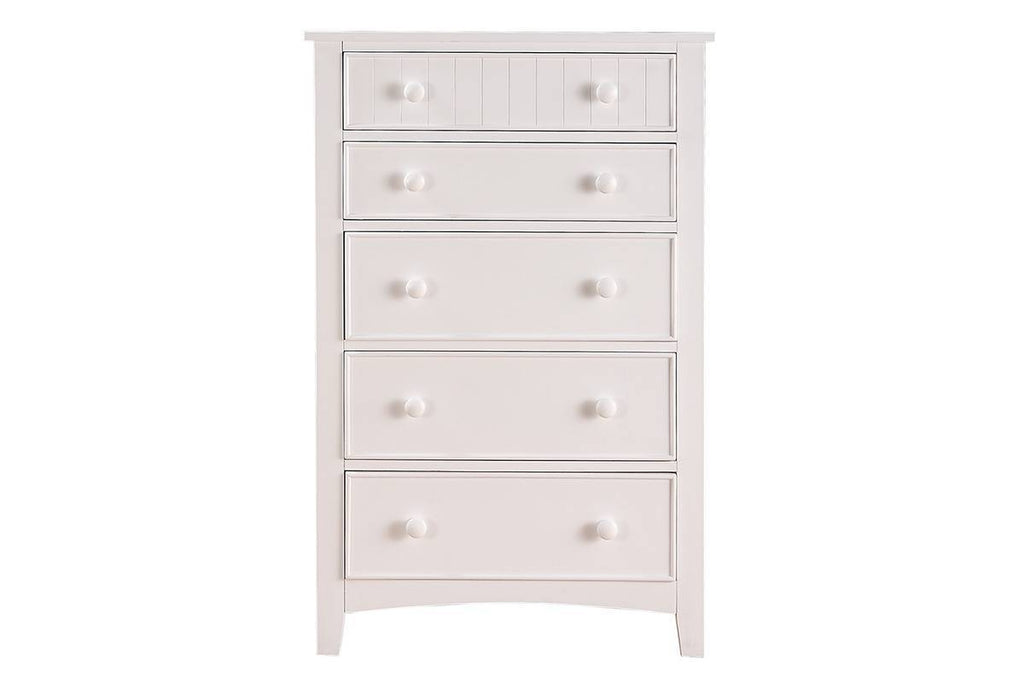 Enjoy the contemporary look of minimal trend using this white accent chest. Combining the smooth and delicate aesthetic of particle board, medium density fiber wood with the modern reflections of 5-drawers, this chest is a great addition for a clean, contemporary setting. Ultimate for bedroom purpose.