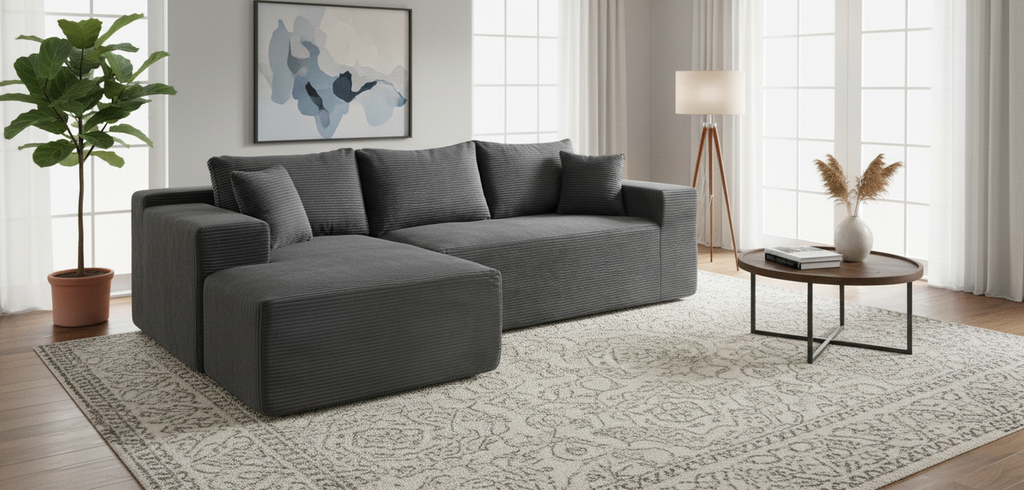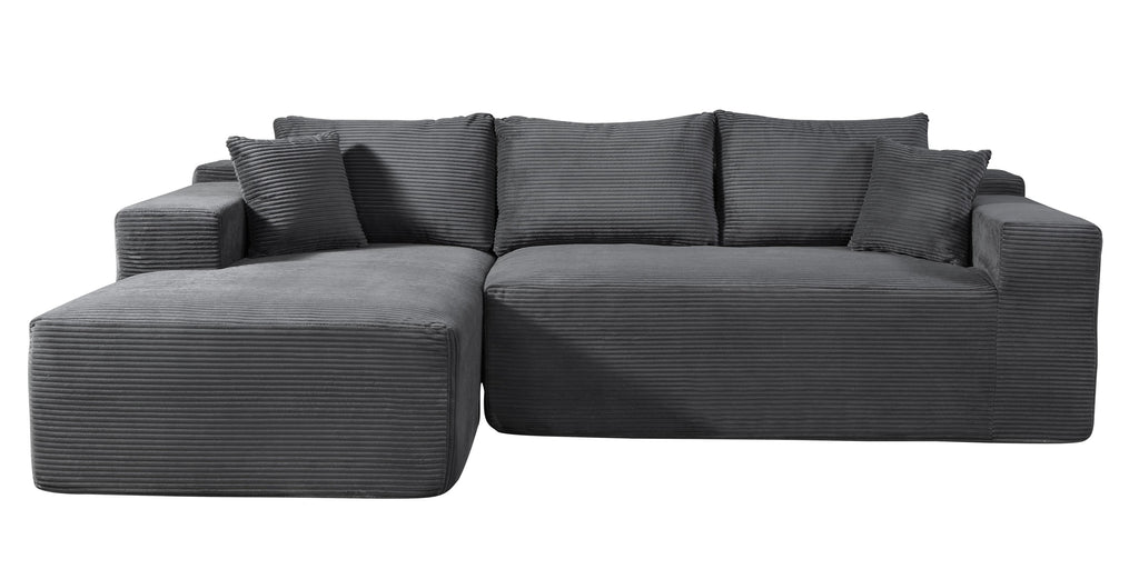 • Upgrade your living space with the Low-Profile L Shaped Sectional Sofa, a versatile piece designed for both comfort and style. Upholstered in soft corduroy fabric, this 3 seater couch adds warmth and texture to your living room while providing a cozy spot for family gatherings, movie nights, or quiet afternoons with a book. Its sleek low-profile silhouette blends effortlessly with any living room furniture style, from contemporary to minimalist.
