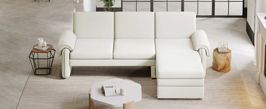 - Detachable Padded Armrest Pillows - The L-shaped sofa features removable, padded armrest pillows designed for ultimate comfort and support. These pillows help protect your cervical spine when lying down or resting, ensuring proper alignment for a more relaxing experience. The armrest pillows are not only ergonomic but also removable, making them easy to clean and maintain.