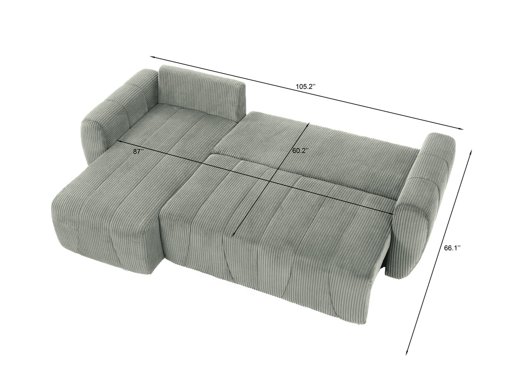 - Multi-functional Design: This convertible sectional sofa effortlessly transforms from a traditional seating arrangement into a convenient bed, offering versatility for various living spaces.