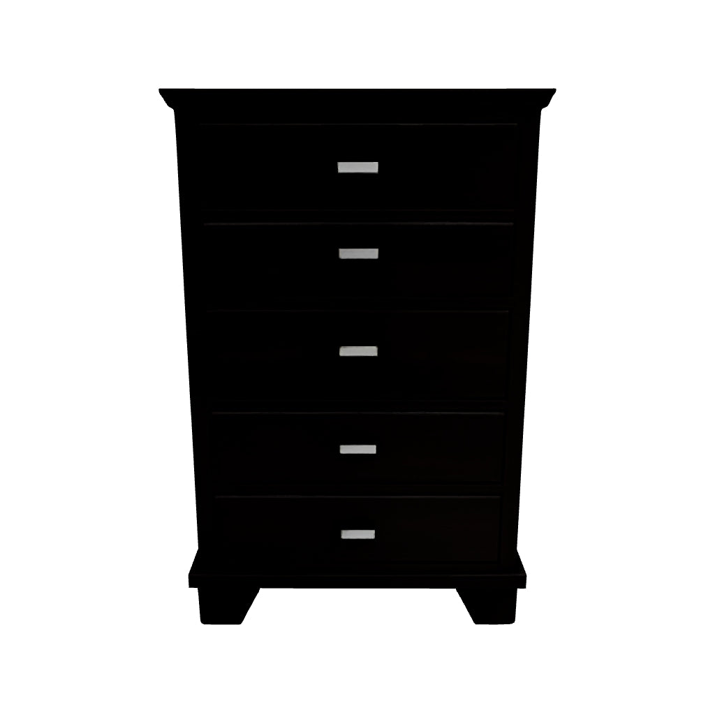 Feast your eyes on this richly versatile chest of drawers. Its traditional-inspired dark brown finish effortlessly blends with contemporary bright nickel-tone pulls to create a stunning look that's not too stuffy or too trendy. Spacious drawers offer plenty of storage for your wardrobe and spare bed linens.