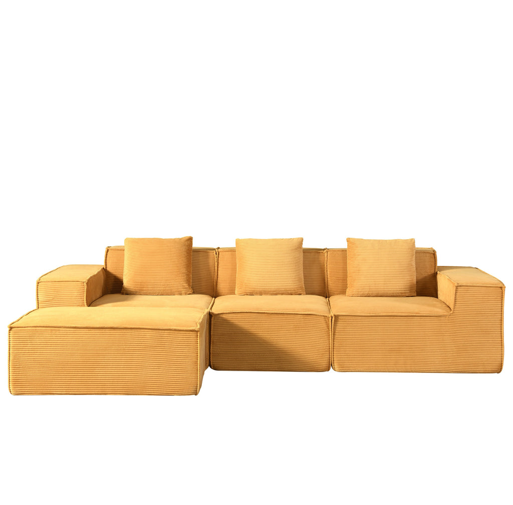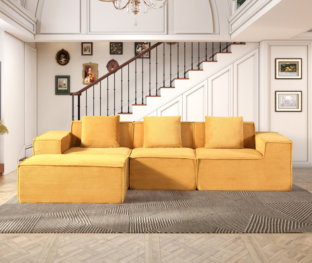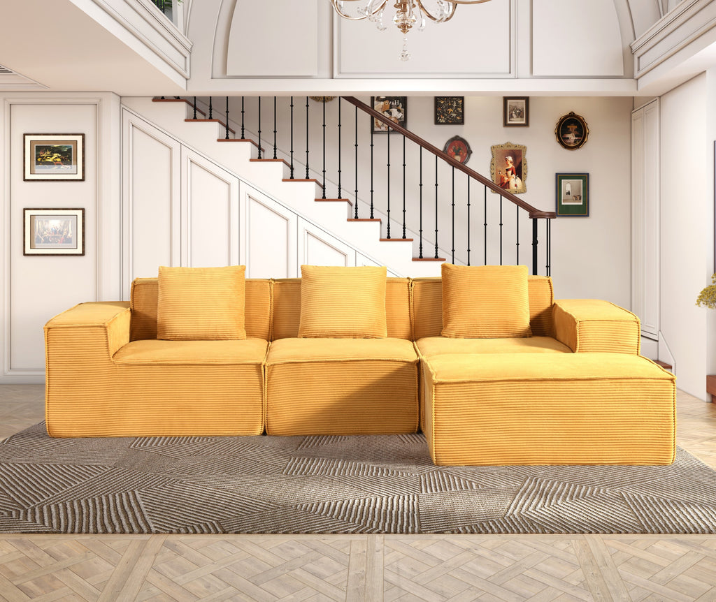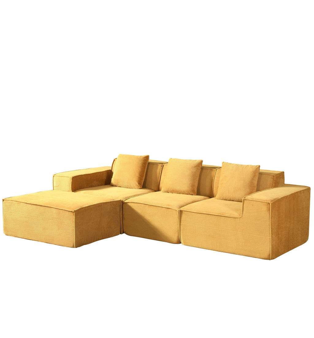 - Stylish Corduroy Fabric in 6 Colors: Available in Black, Dark Green, Dark Grey, Red Orange, Ginger Yellow, and Beige, this high-back modular sofa brings modern charm and cozy texture to any home décor.