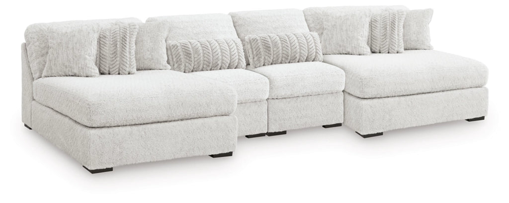 This plush double-chaise sectional is the ultimate spot to unwind after a long day. Its ultra soft upholstery feels luxurious against your skin, while the roomy seats and comfy pillows provide support in all the right places. With plenty of space to stretch out or snuggle up with loved ones, this modular sectional is perfect for movie nights, game days and everything in between.