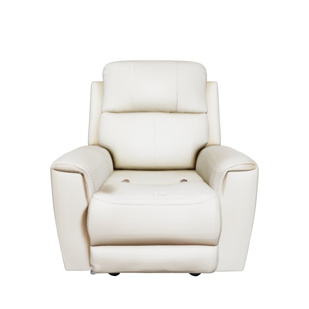 Focus on function. This practical power recliner balances contemporary character and irresistible comfort. Its affordable, expertly matched leather and faux leather upholstery keeps your style up to speed without breaking the bank. Reclining at the touch of a button, the recliner plays well in relaxed, luxe seating areas made for quality time.