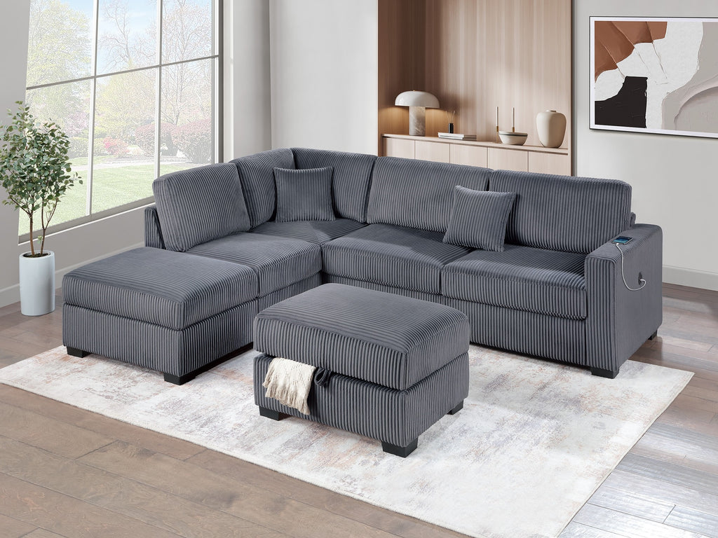 Listing Includes - 3pc Sectional Sofa Set (Reversible Chaise, Sofa w USB And Storage Ottoman ) Only.