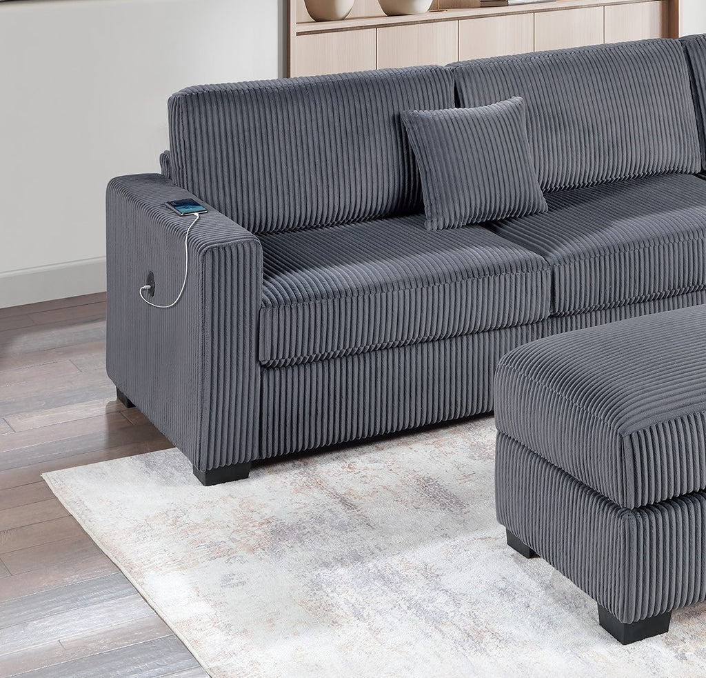 - Listing Includes - 3pc Sectional Sofa Set (Reversible Chaise, Sofa w USB And Storage Ottoman ) Only.