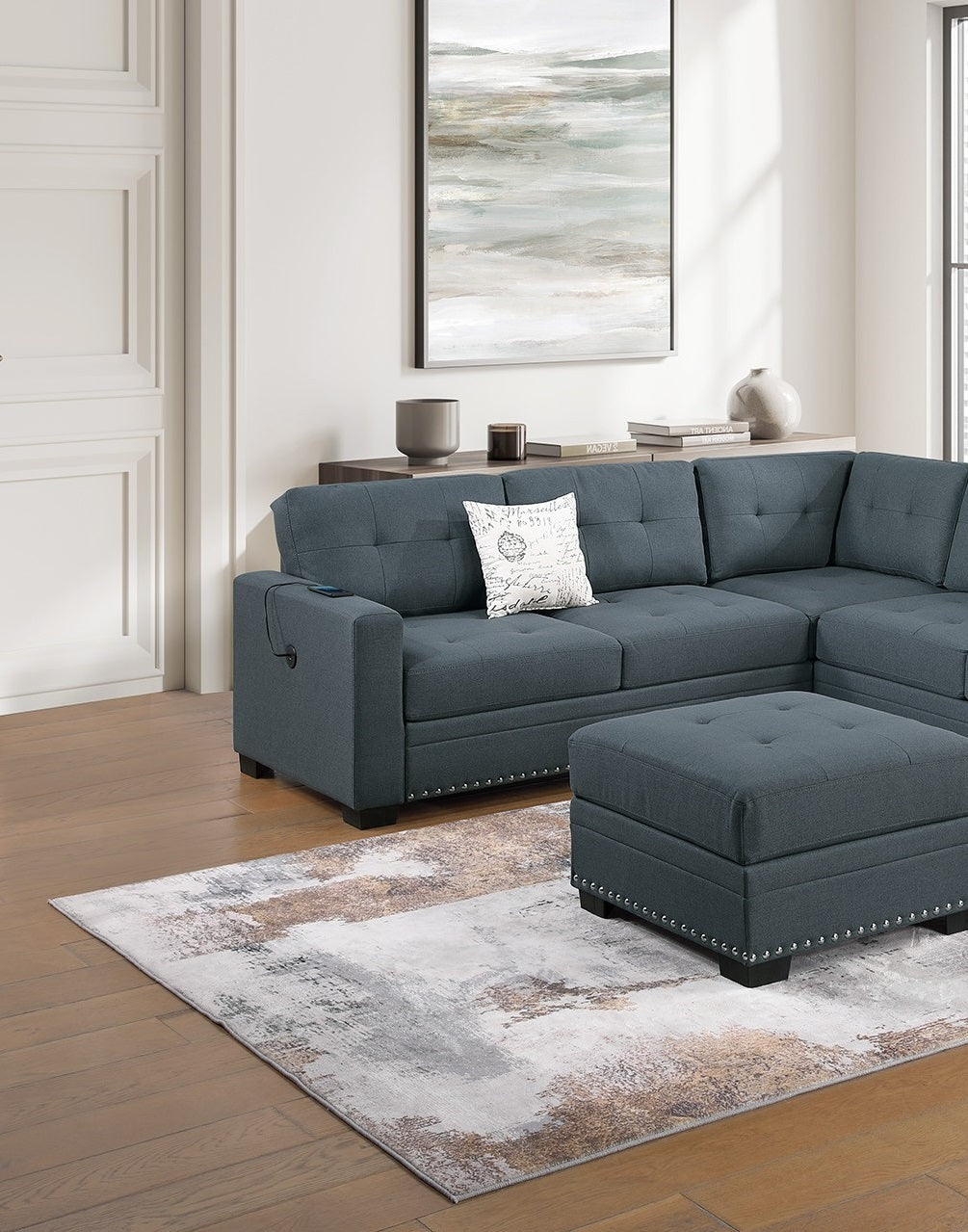 - Listing Includes - 4pc Sectional Sofa Set (RAF/LAF One-Arm Loveseat W/USB, Corner Wedge, Cocktail Ottoman) Only.